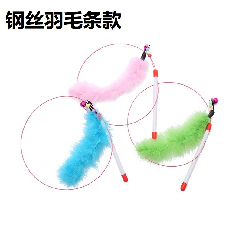 고양이 장난감 고양이 스틱 고양이 셀프 하이 스틸 와이어 색상 교체 깃털 머리띠 벨은 새로운 애완 동물 제품을 물 수 없습니다스토어 가기