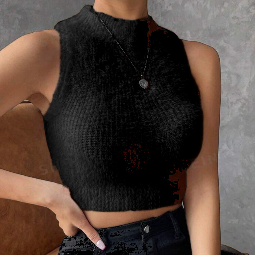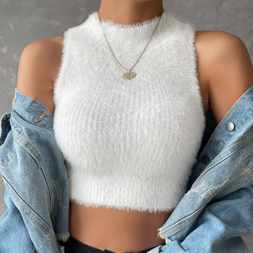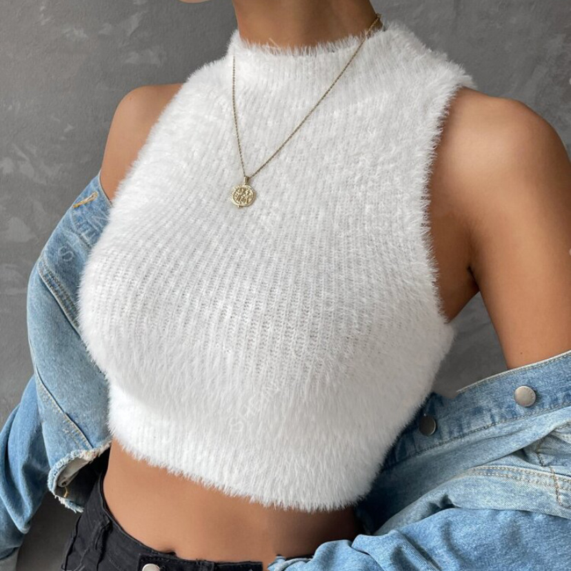 플러시 벨벳 조끼 서스펜더 봄, 가을 이너웨어 순수한 욕망 스타일 슬리밍 모조 밍크 벨벳 홀터 탑 Amazon 여성용 조끼
