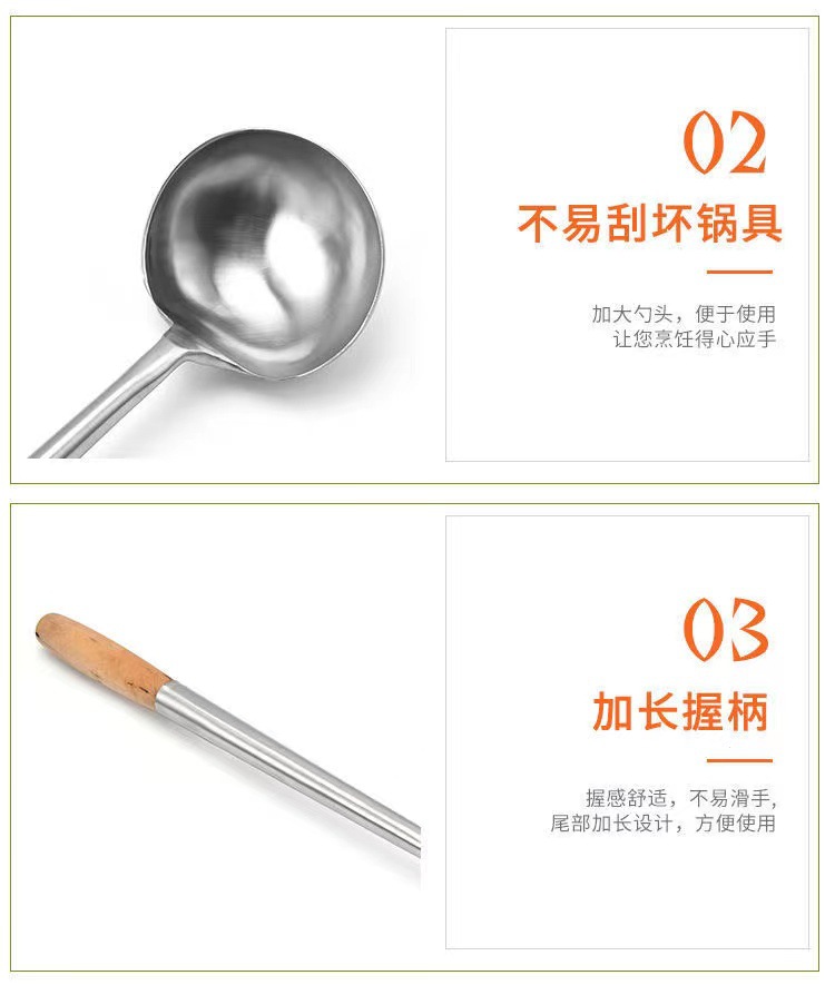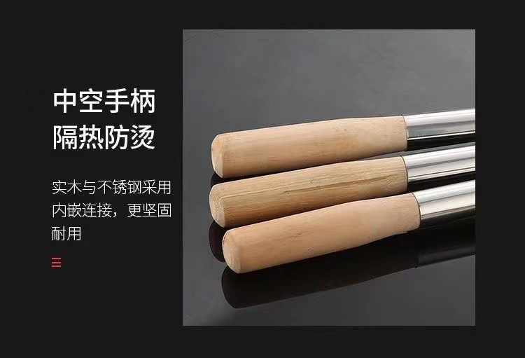 요리사 스테인레스 스틸 볶음 삽 가정용 호텔 매점 연장 대형 나무 손잡이 볶음 삽 주방 용품