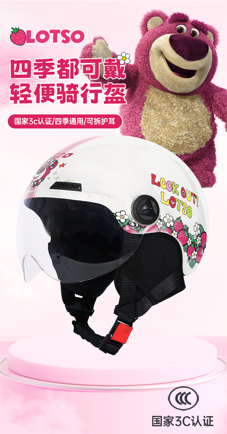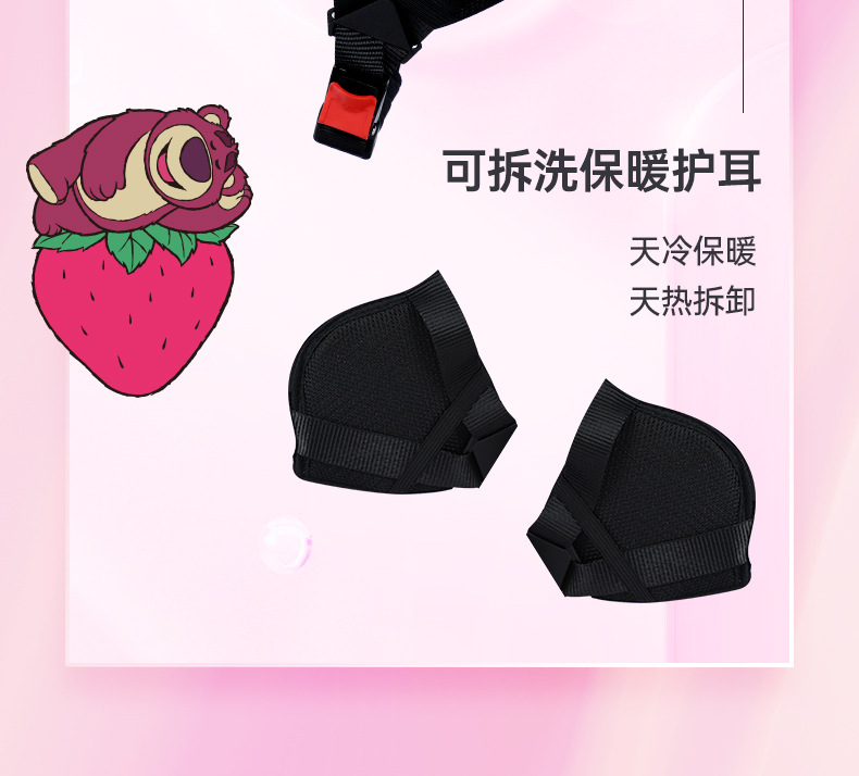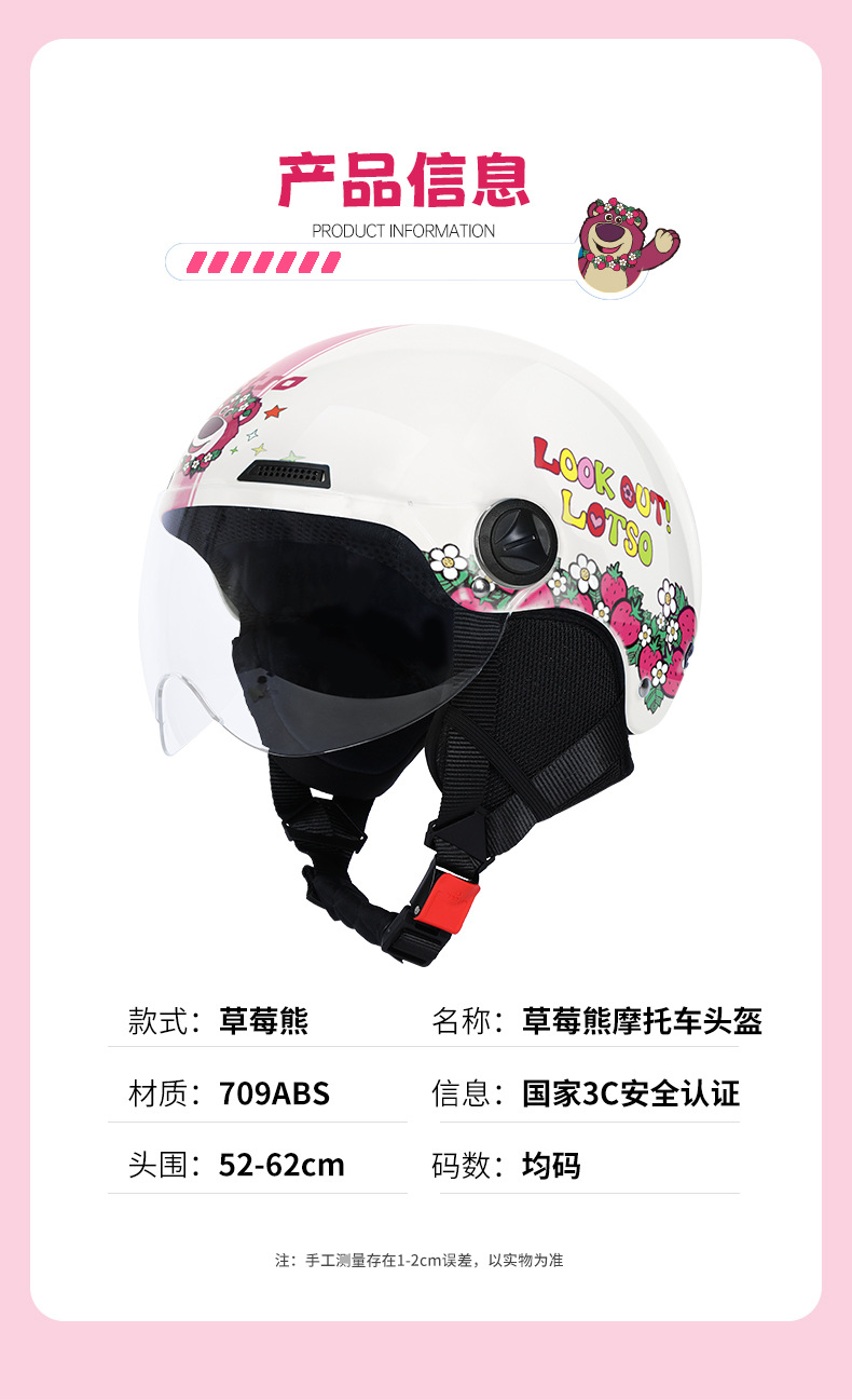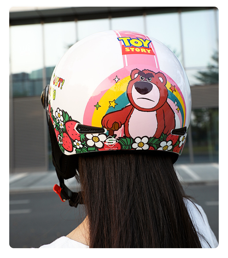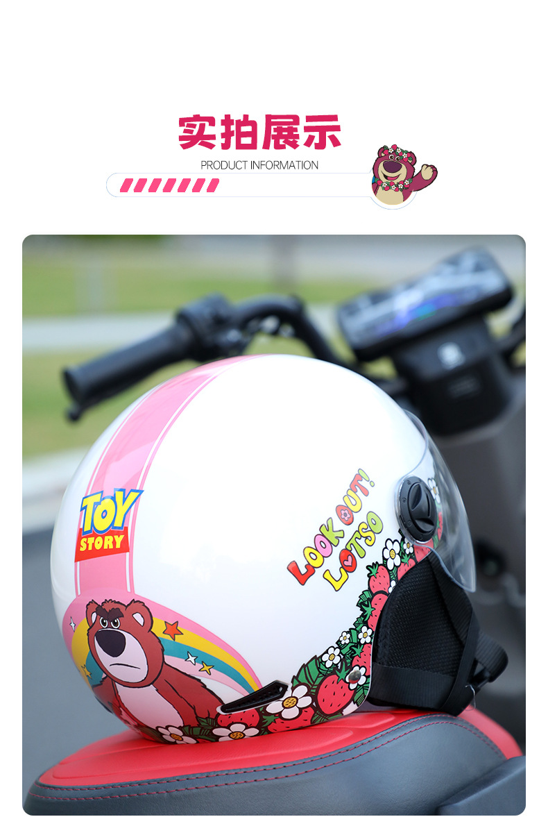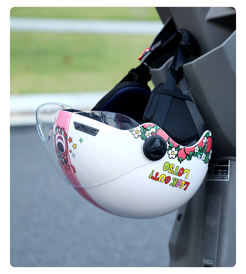 딸기 곰 3C 전기 자동차 오토바이 헬멧 숙녀 겨울 따뜻한 반 헬멧 안전 헬멧 배터리 자동차 사계절 유니버설스토어 가기