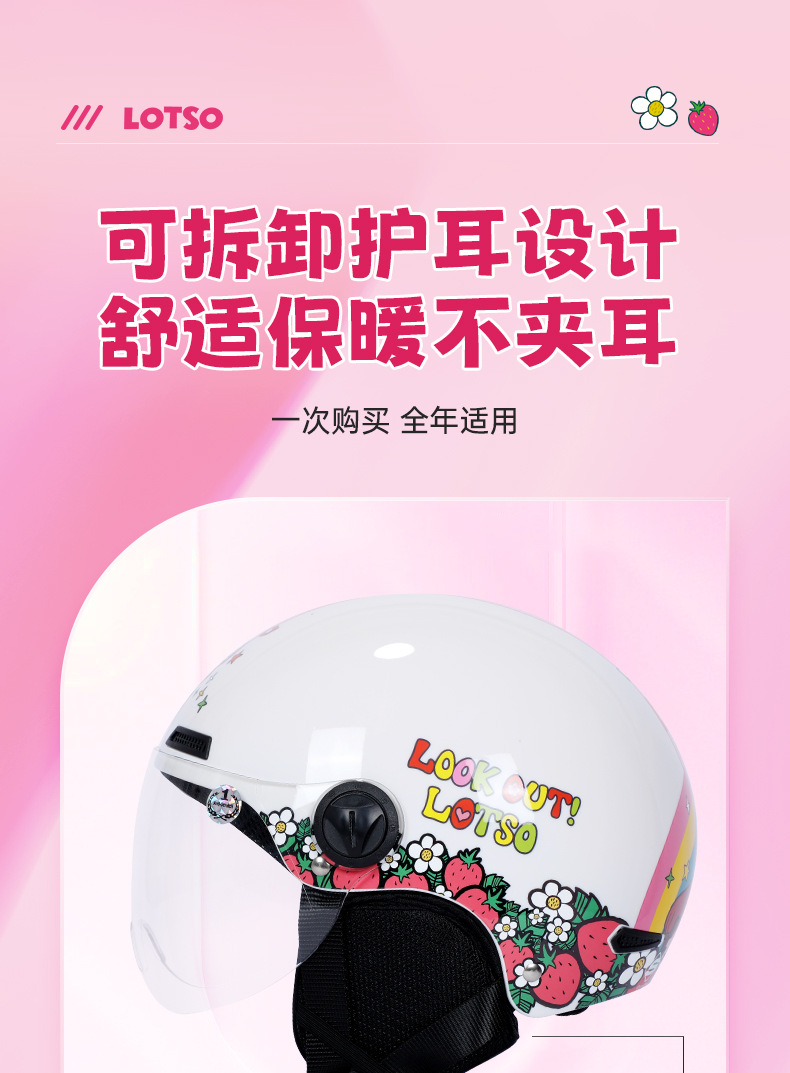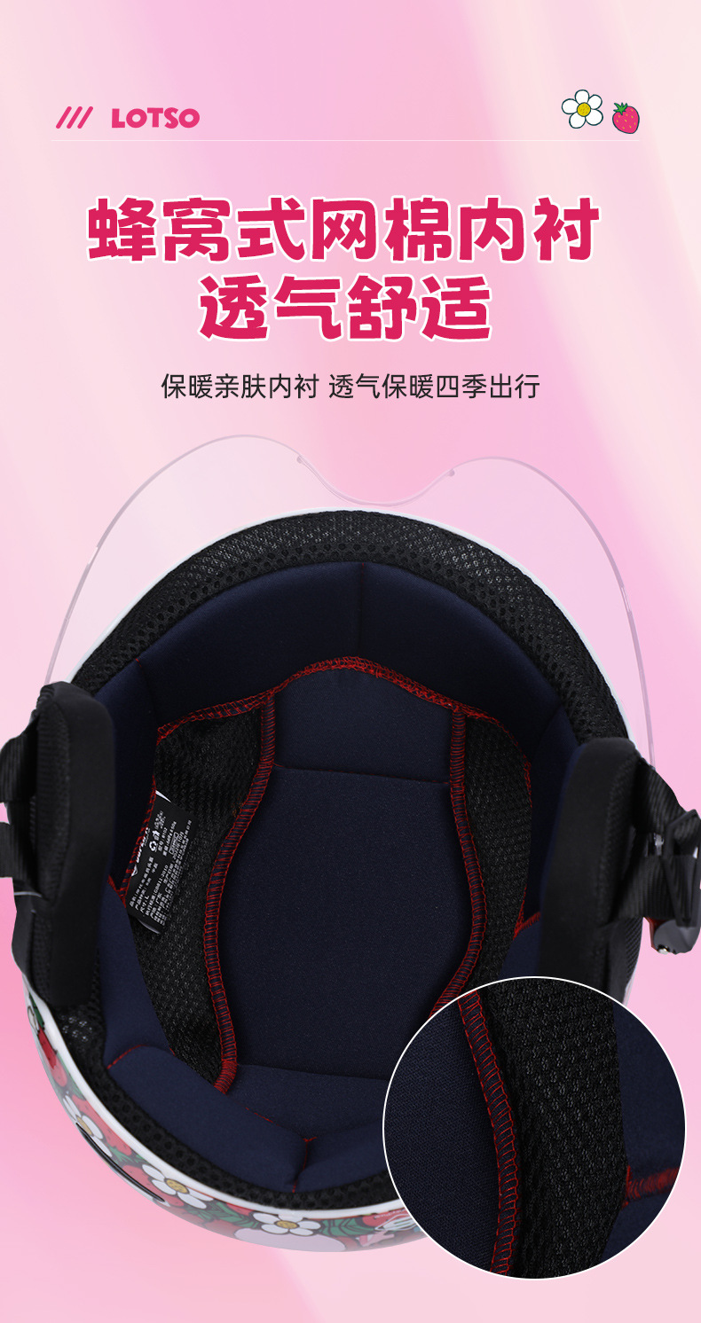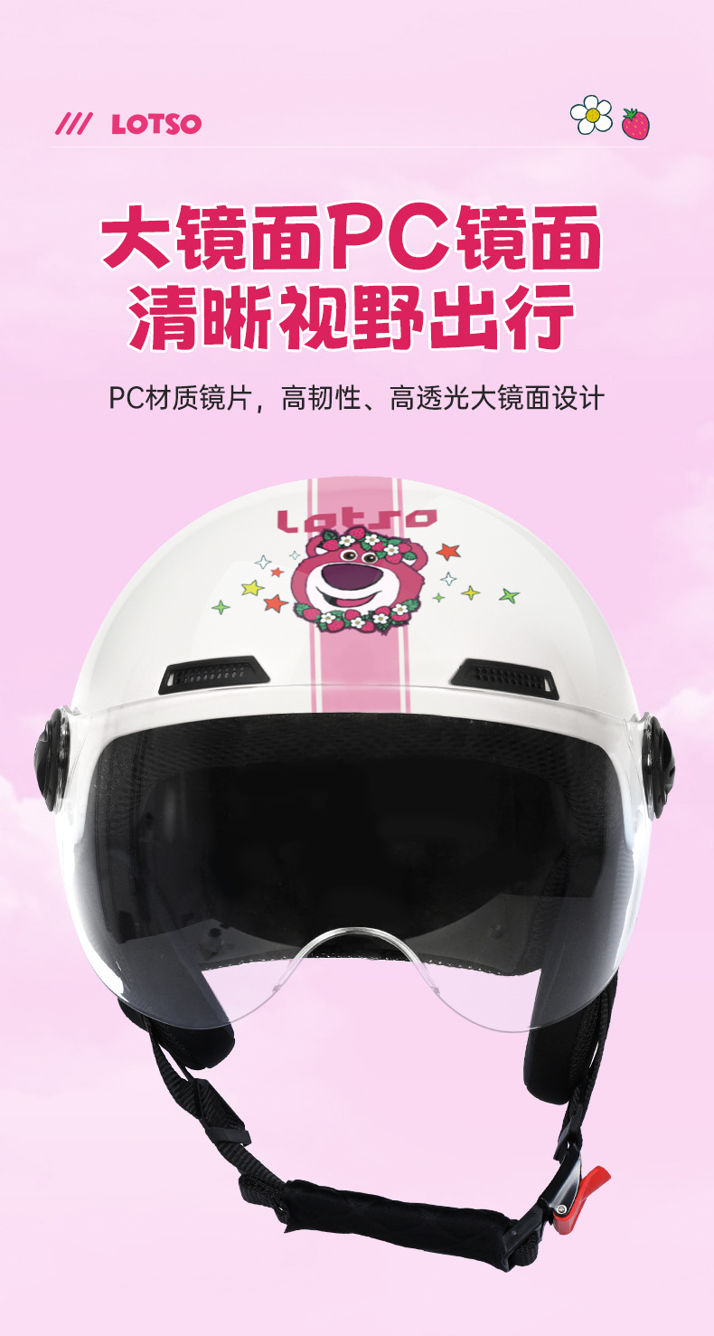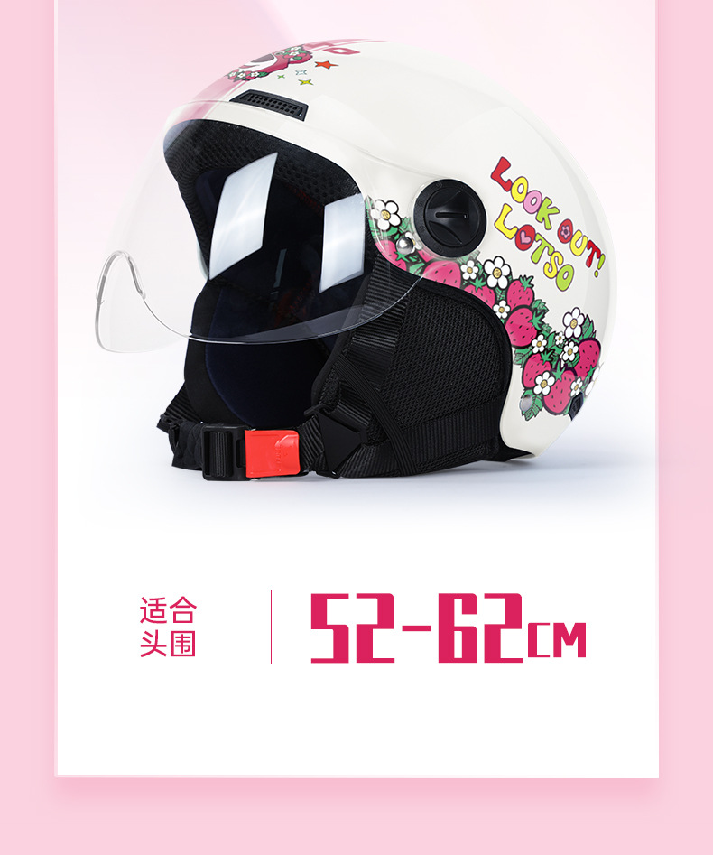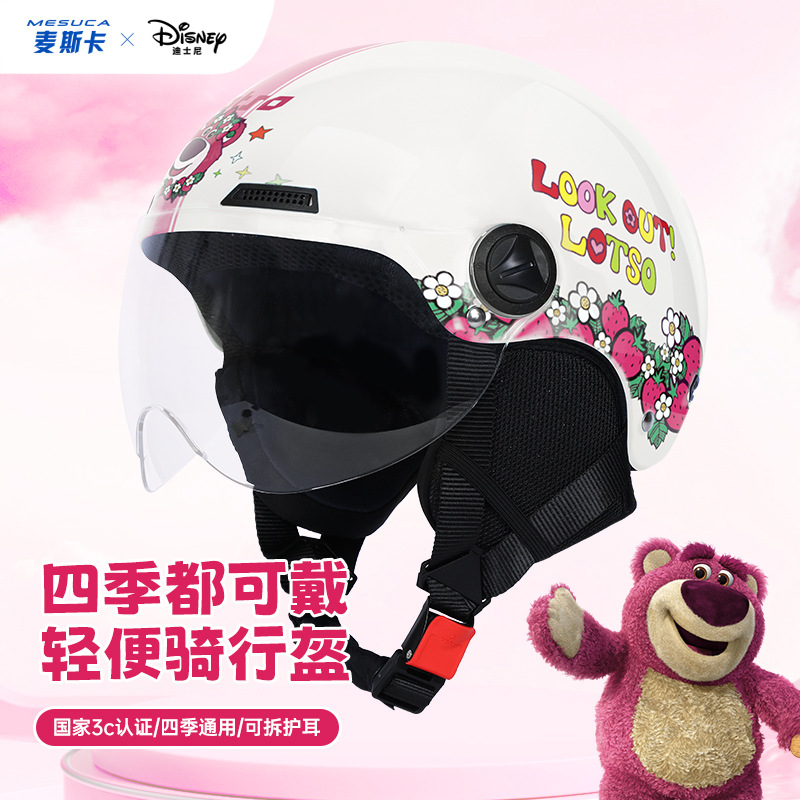딸기 곰 3C 전기 자동차 오토바이 헬멧 숙녀 겨울 따뜻한 반 헬멧 안전 헬멧 배터리 자동차 사계절 유니버설스토어 가기
