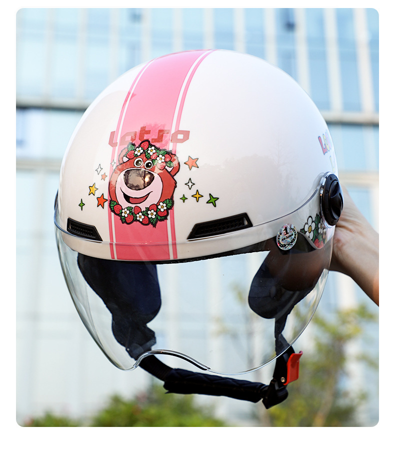 딸기 곰 3C 전기 자동차 오토바이 헬멧 숙녀 겨울 따뜻한 반 헬멧 안전 헬멧 배터리 자동차 사계절 유니버설