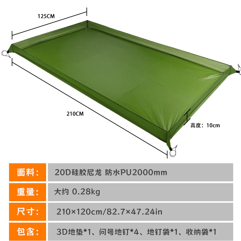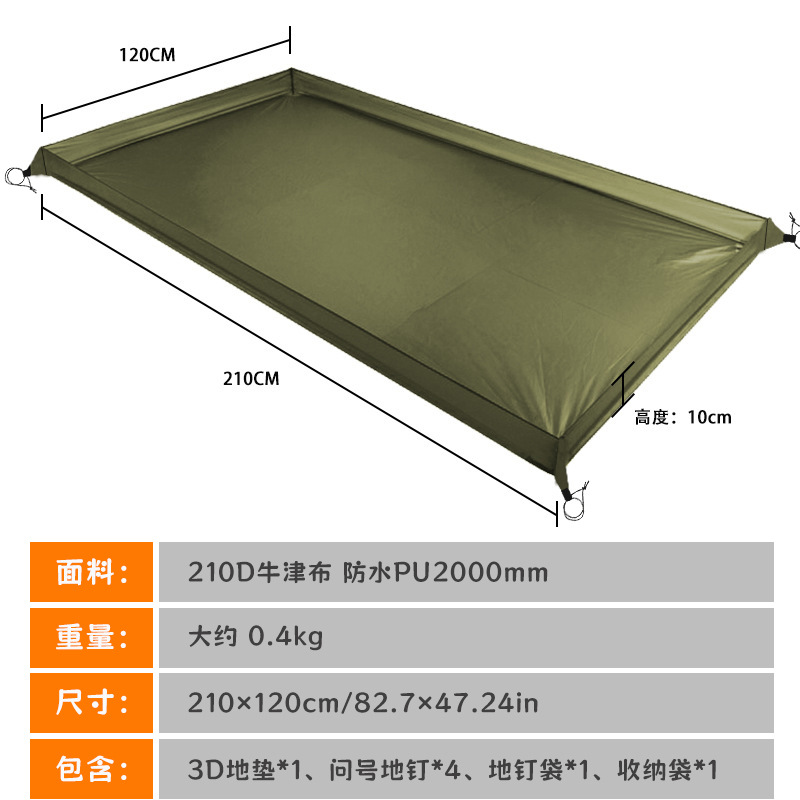 2.1*1.2m 210D牛津重量:约408g(包装尺寸:17X8X8CM)