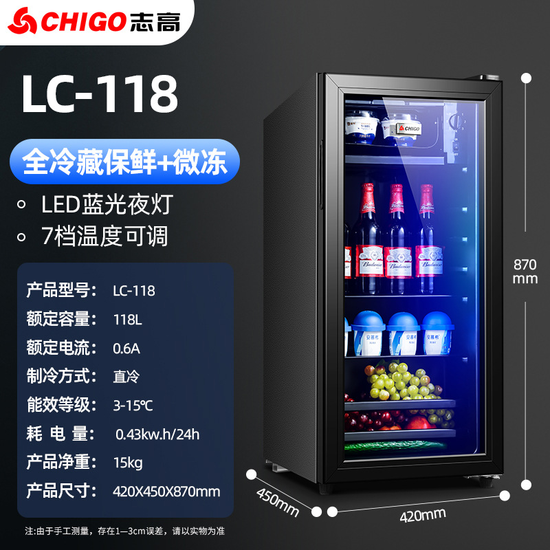 치고 가정용 아이스 바 소형 냉장고 상업용 사무실 차 신선한 음료 레드 와인 캐비닛 투명 냉장고