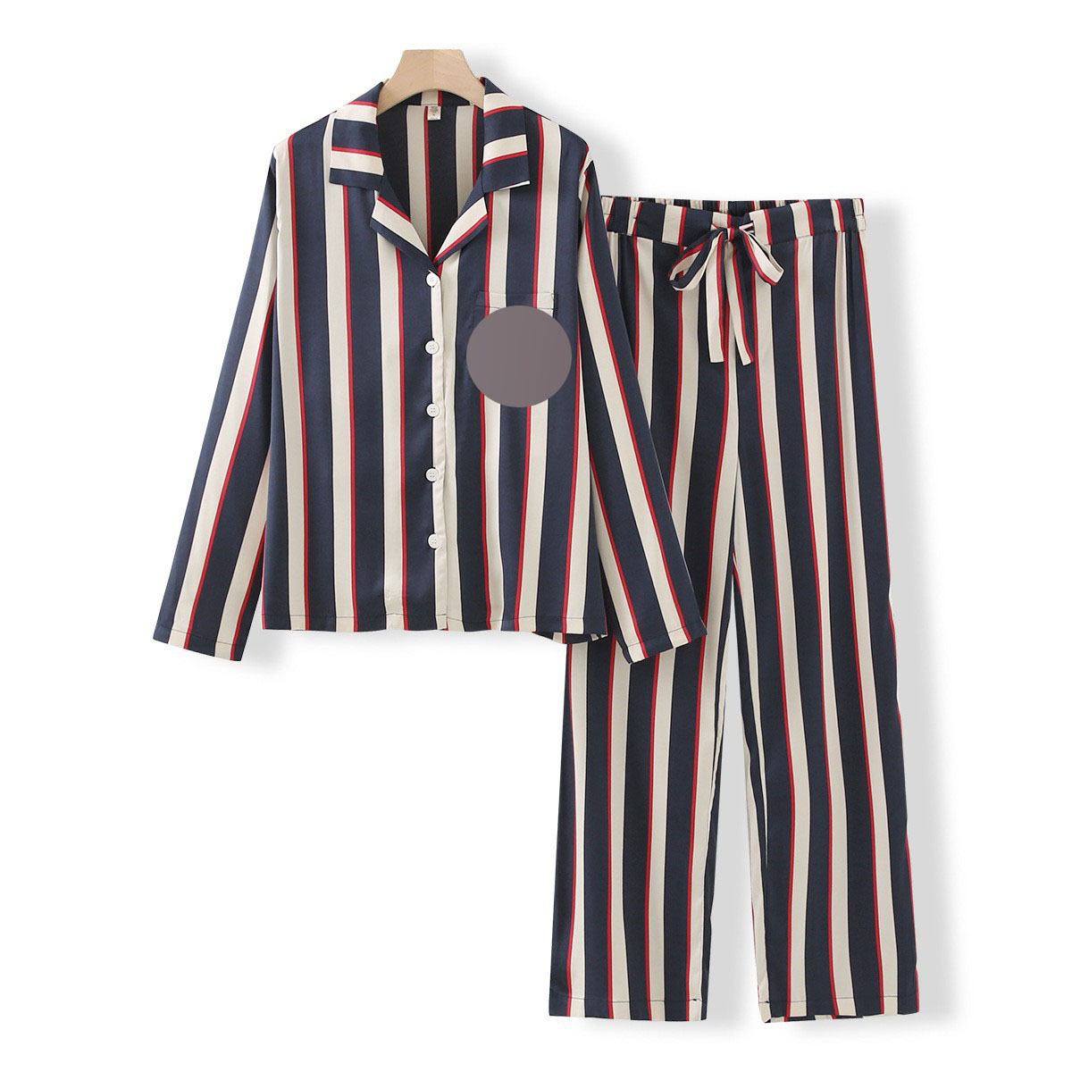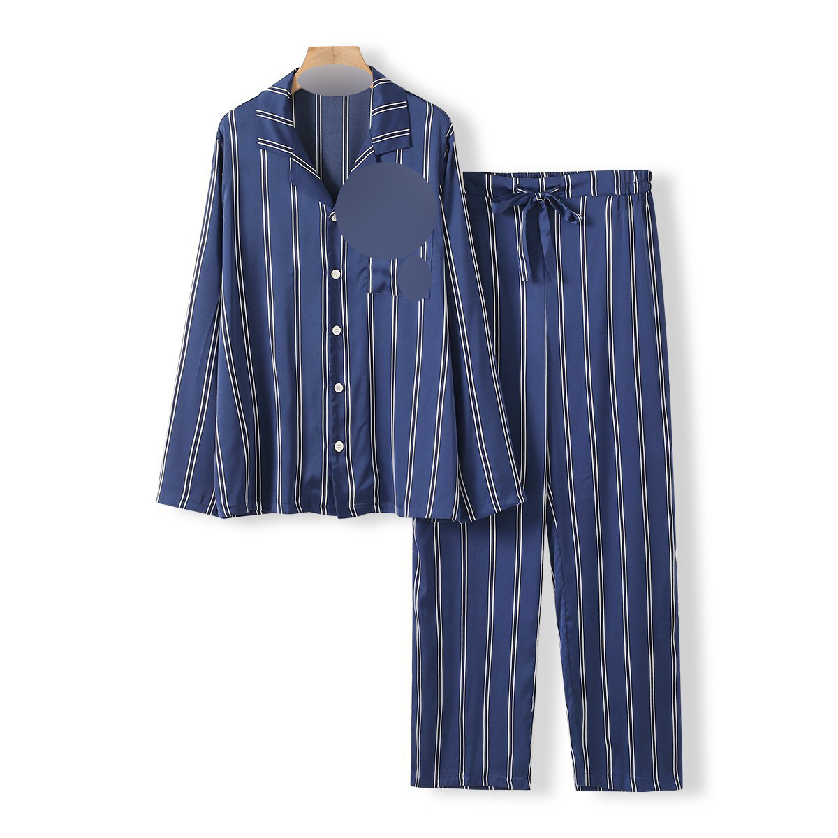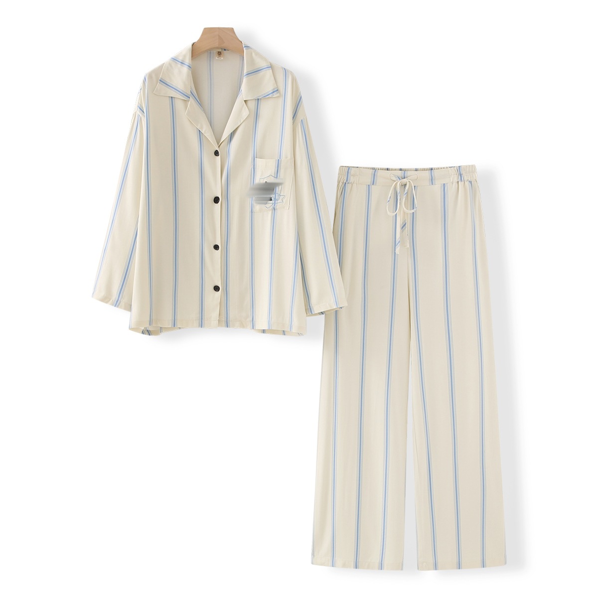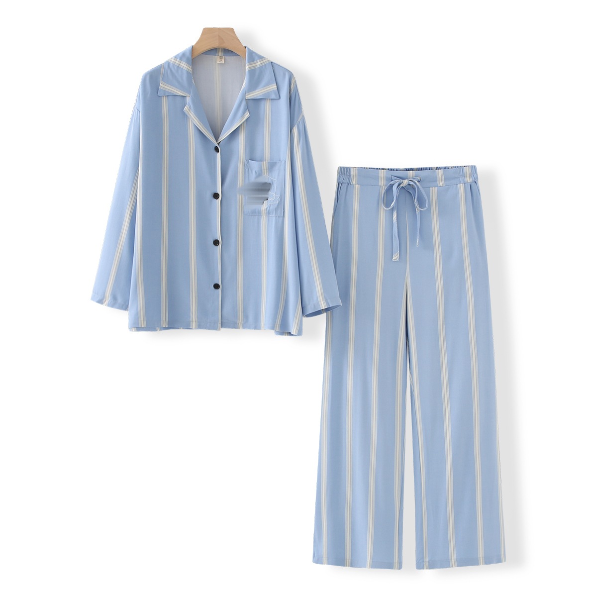 • 와이드 블루 스트라이프 긴 소매 바지