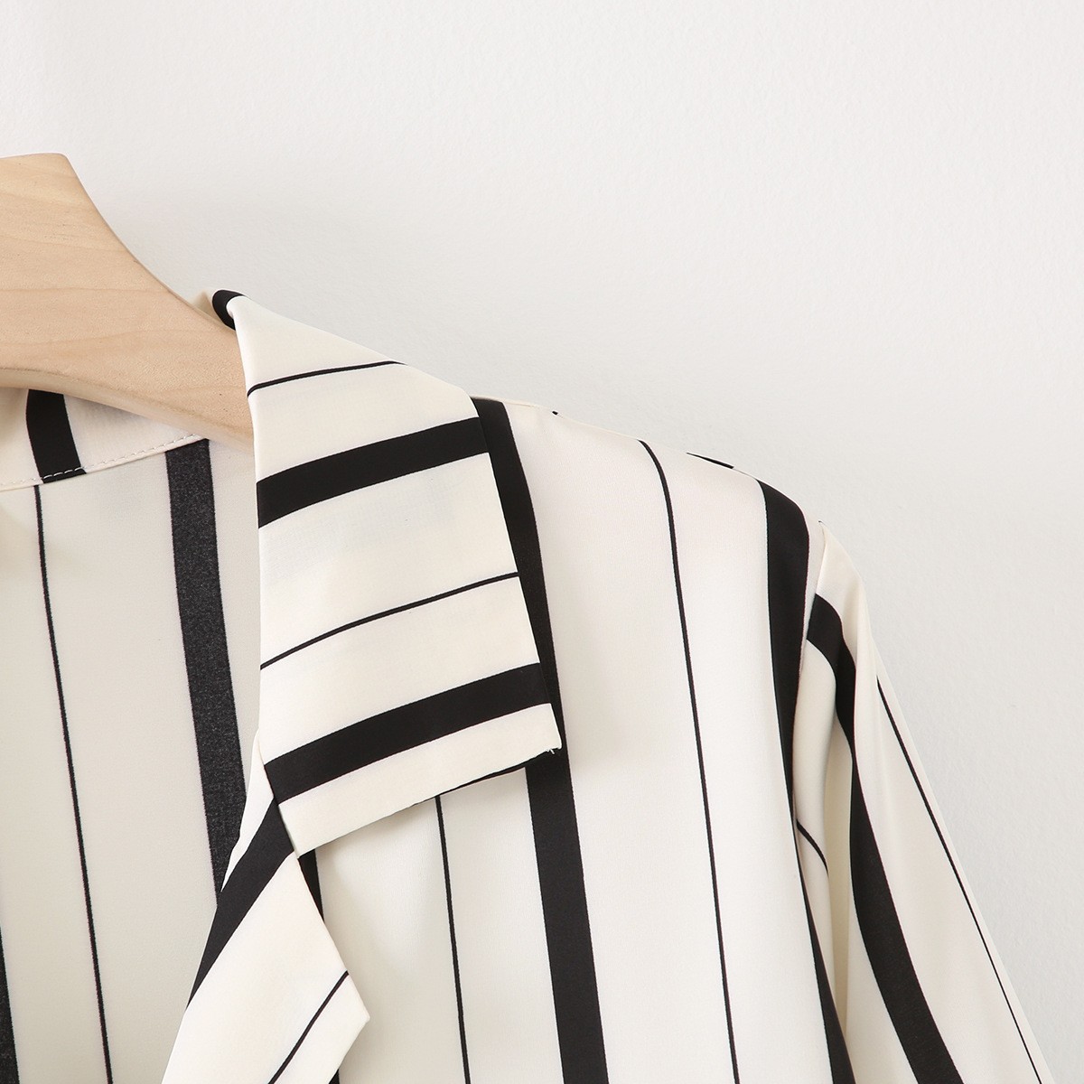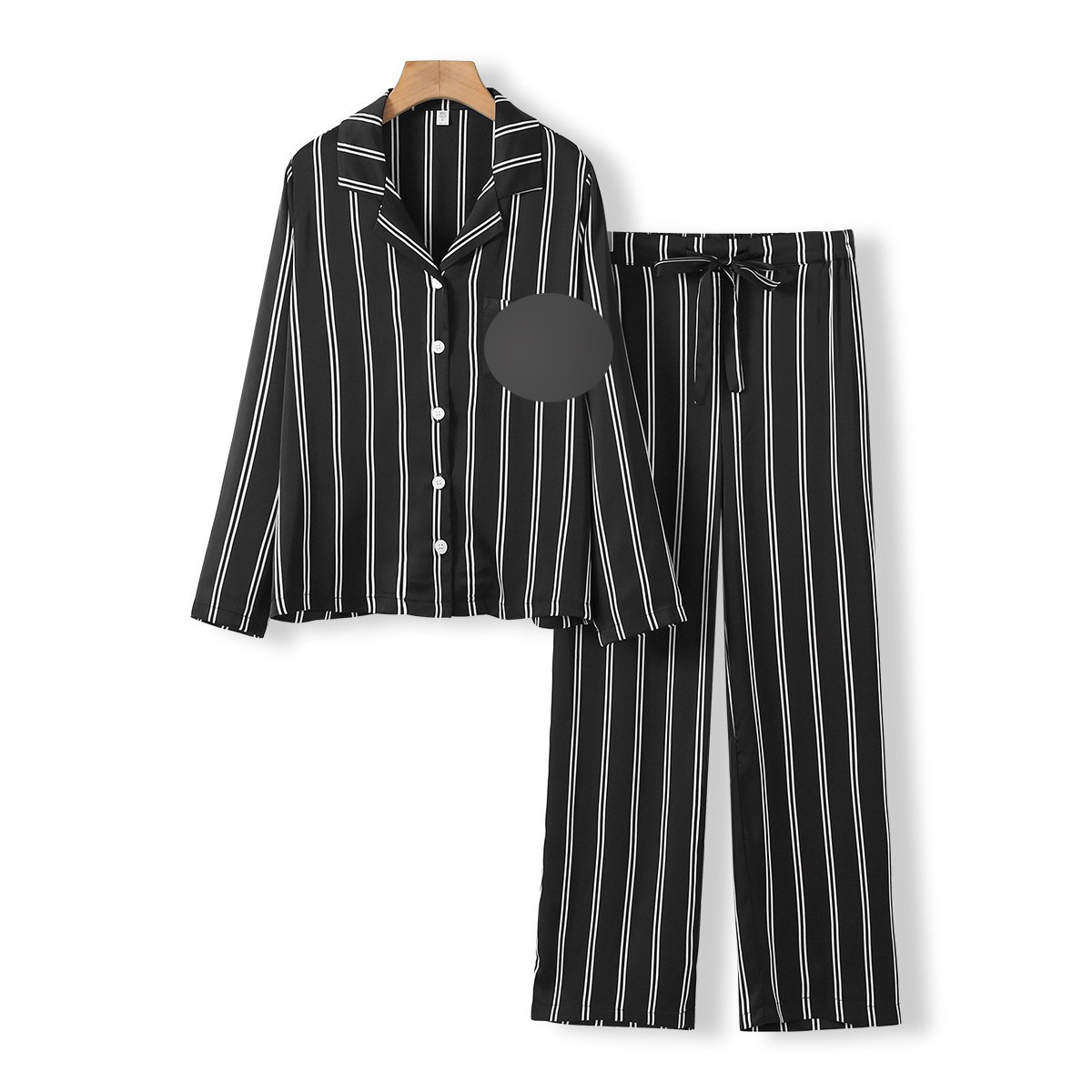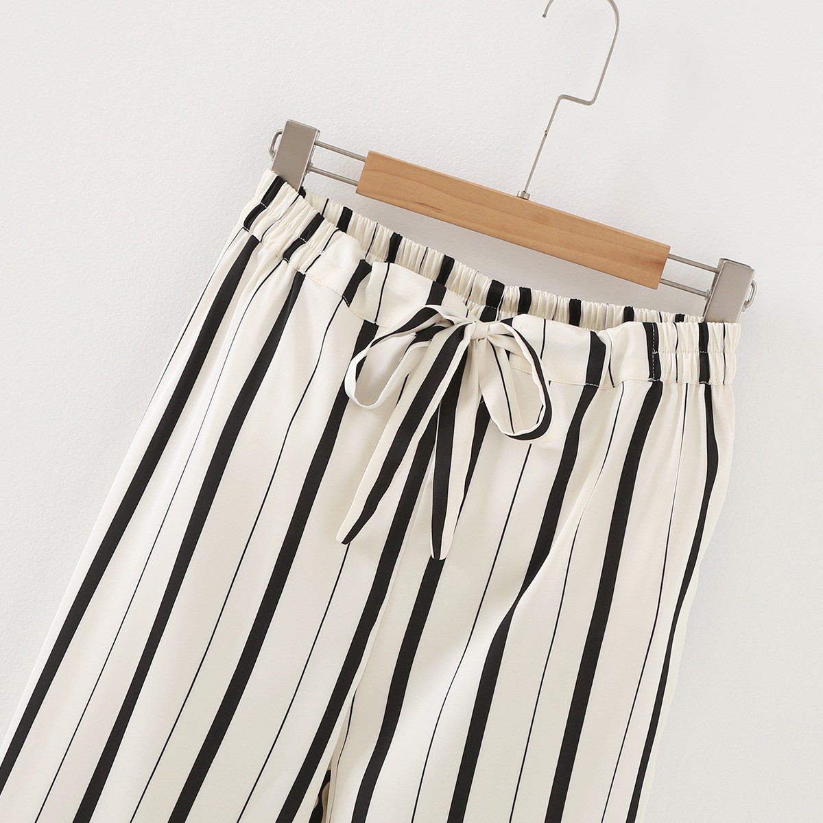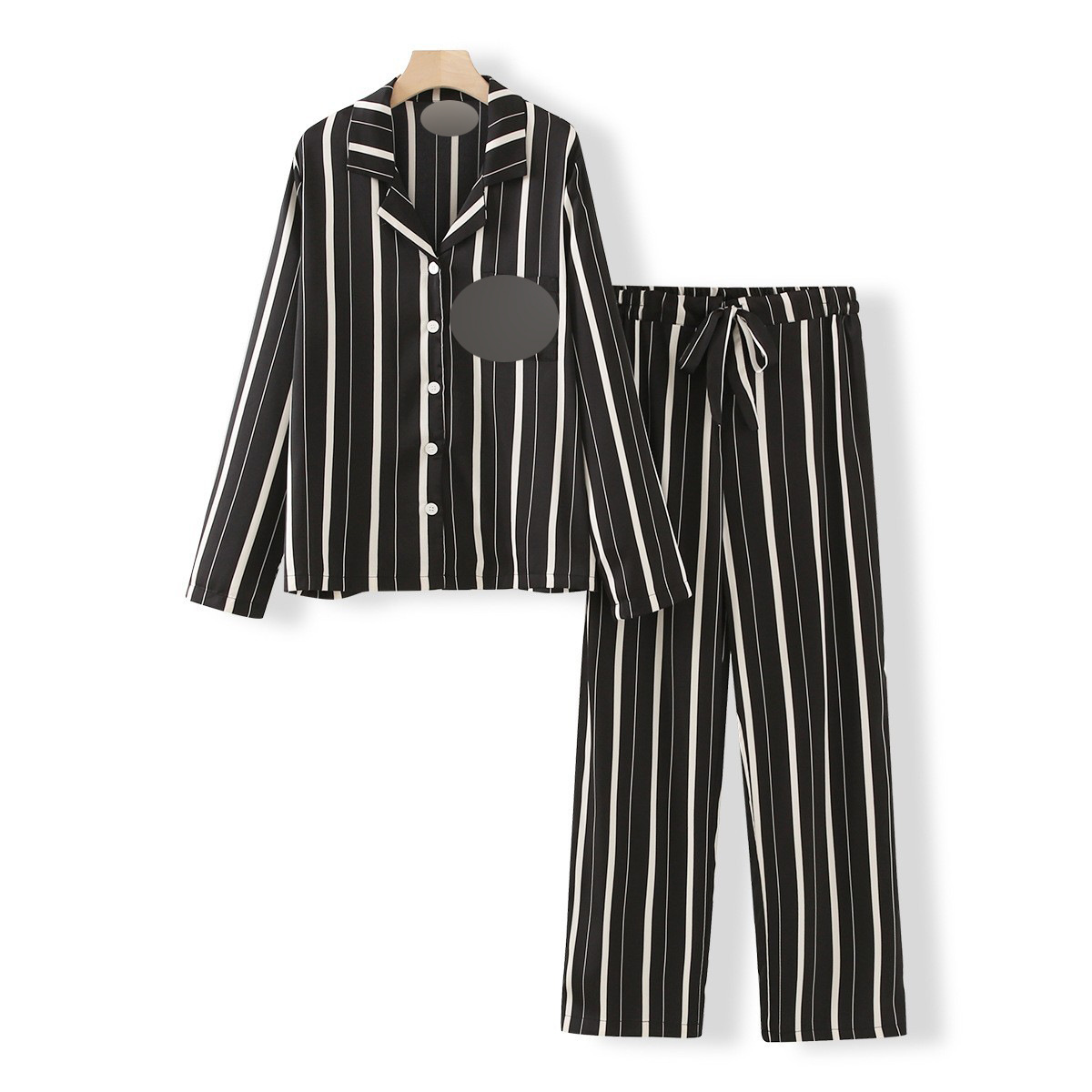 • 와이드 블랙 스트라이프 긴 소매 바지