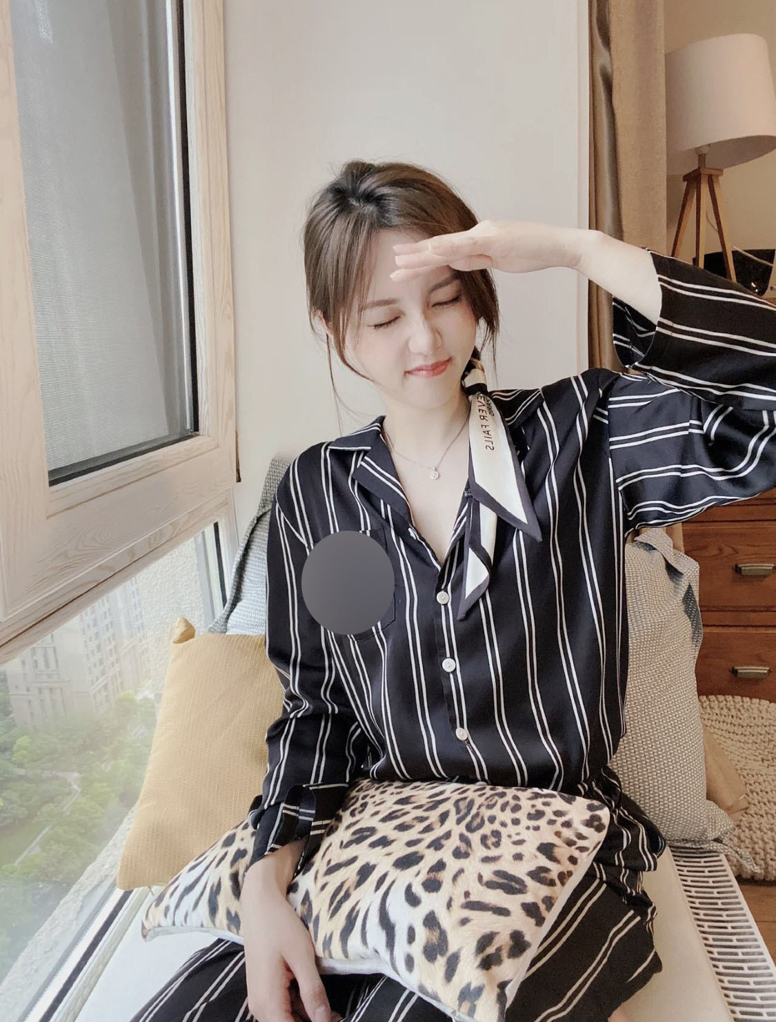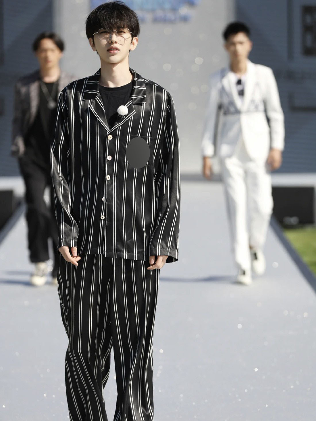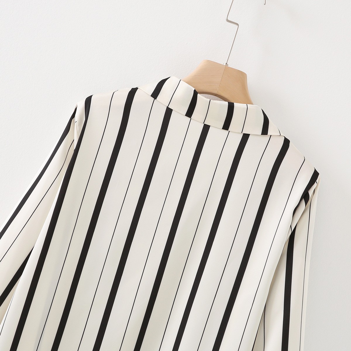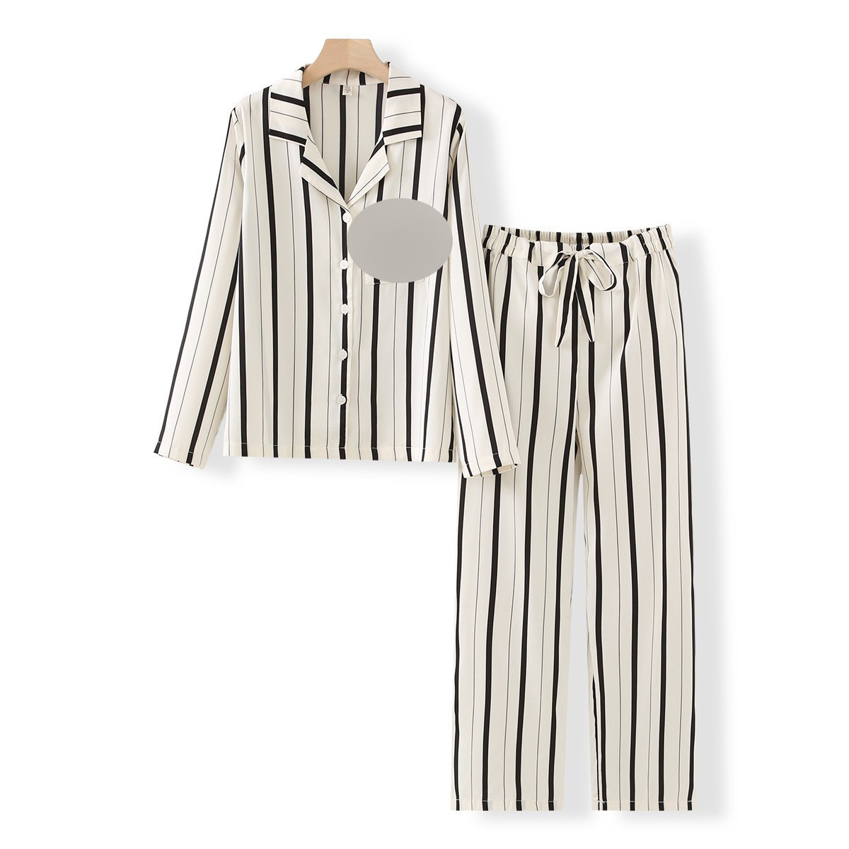 • 와이드 블랙 스트라이프 긴 소매 바지