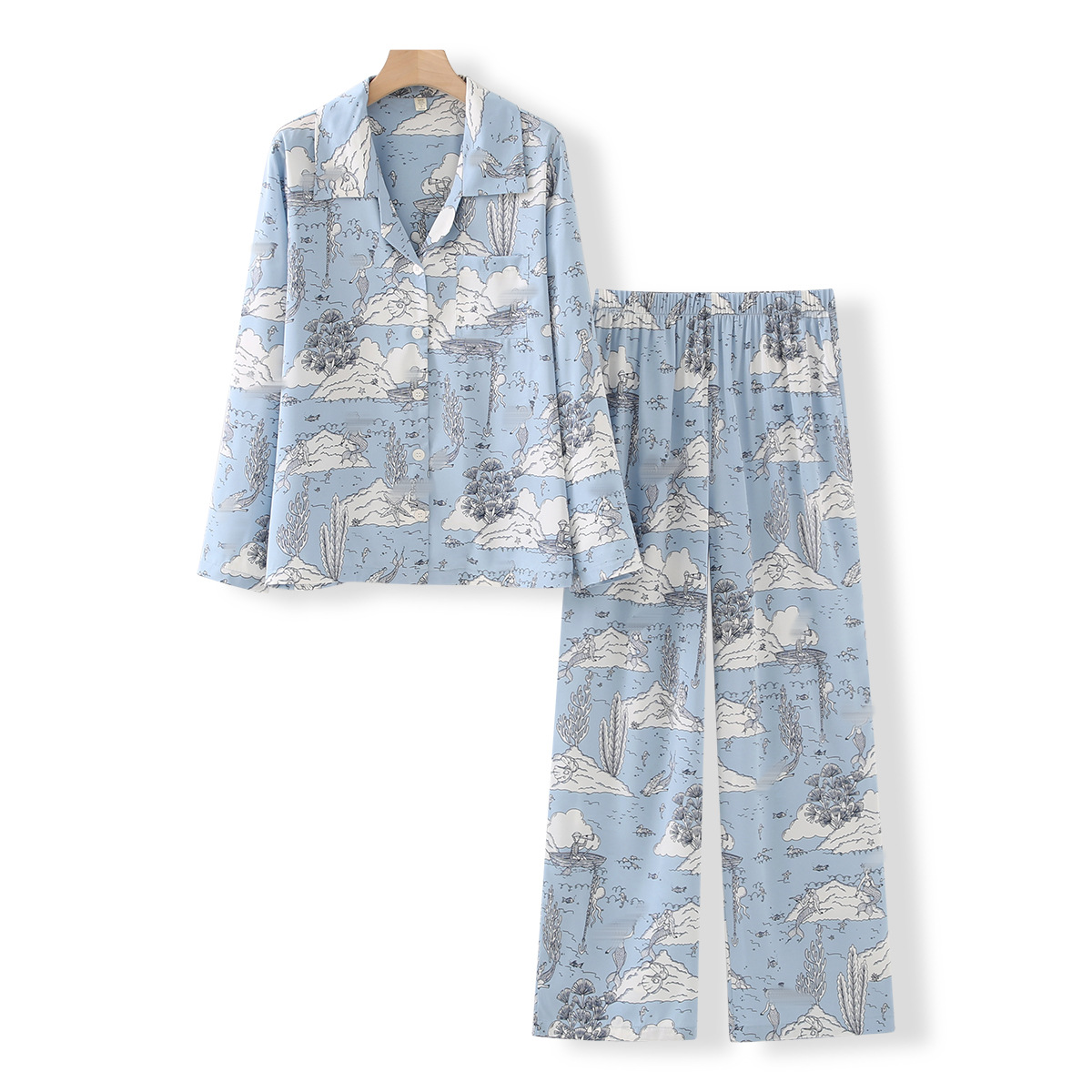 • 라이트 블루 프린트 사자 긴 소매 세트