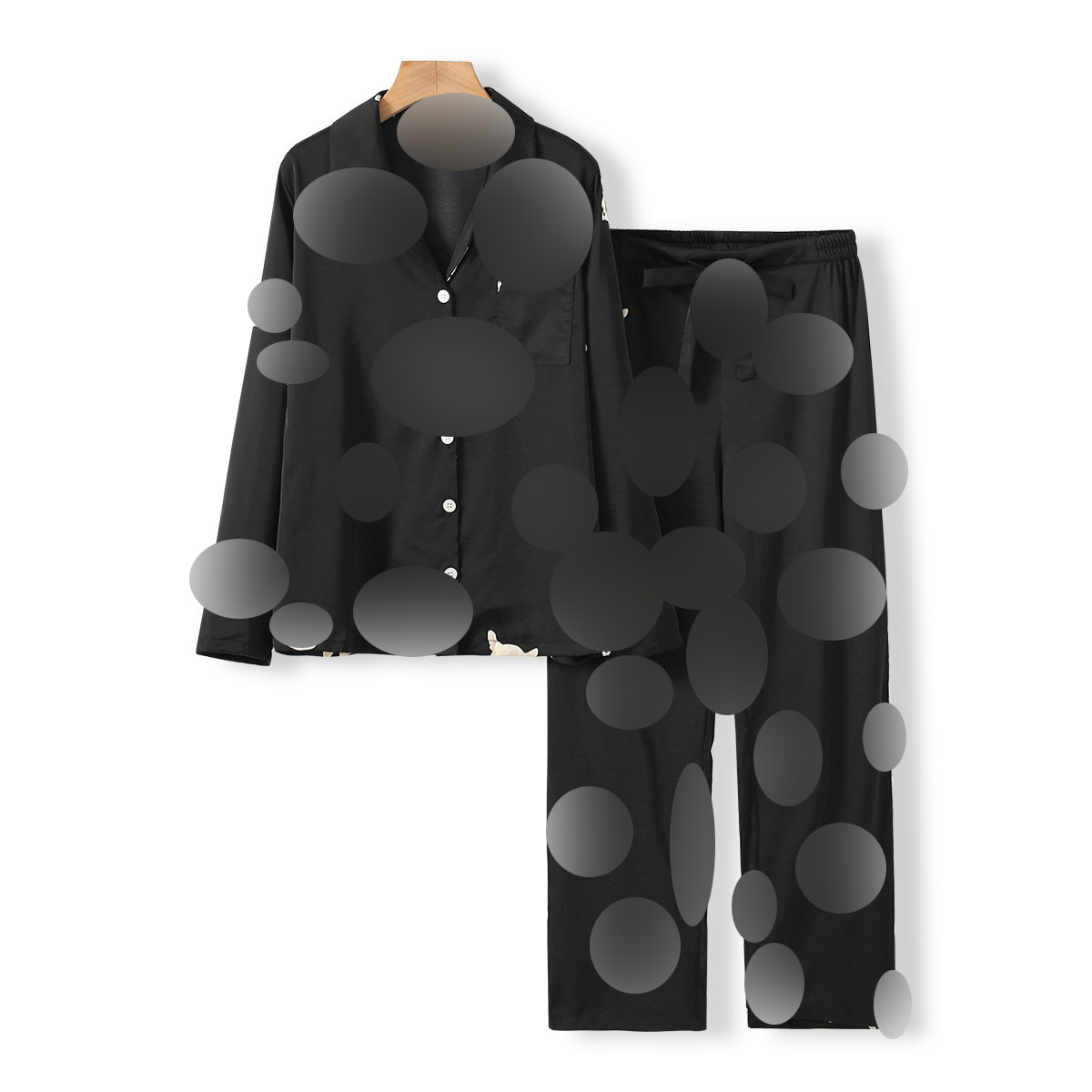 • 전체 인쇄 작은 검은 개 긴 소매 세트
