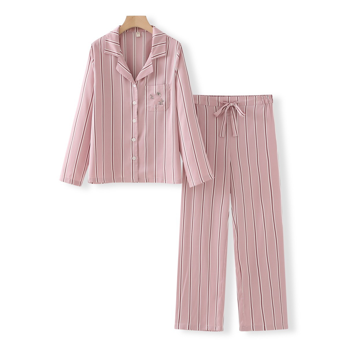 • 코끼리 탈출 와이드 핑크 스트라이프 긴 소매 바지