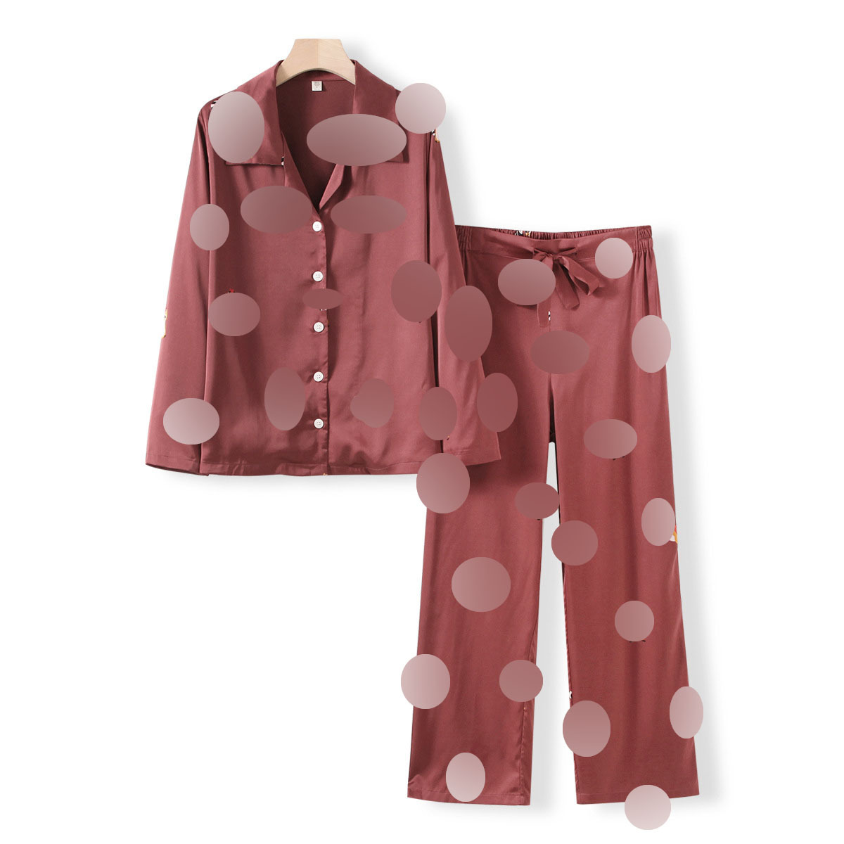 2024 하이 퀄리티 아이스 실크 홈 착용 얇은 편안한 외부 착용 남성과 여성 커플의 긴 소매 파자마 세트