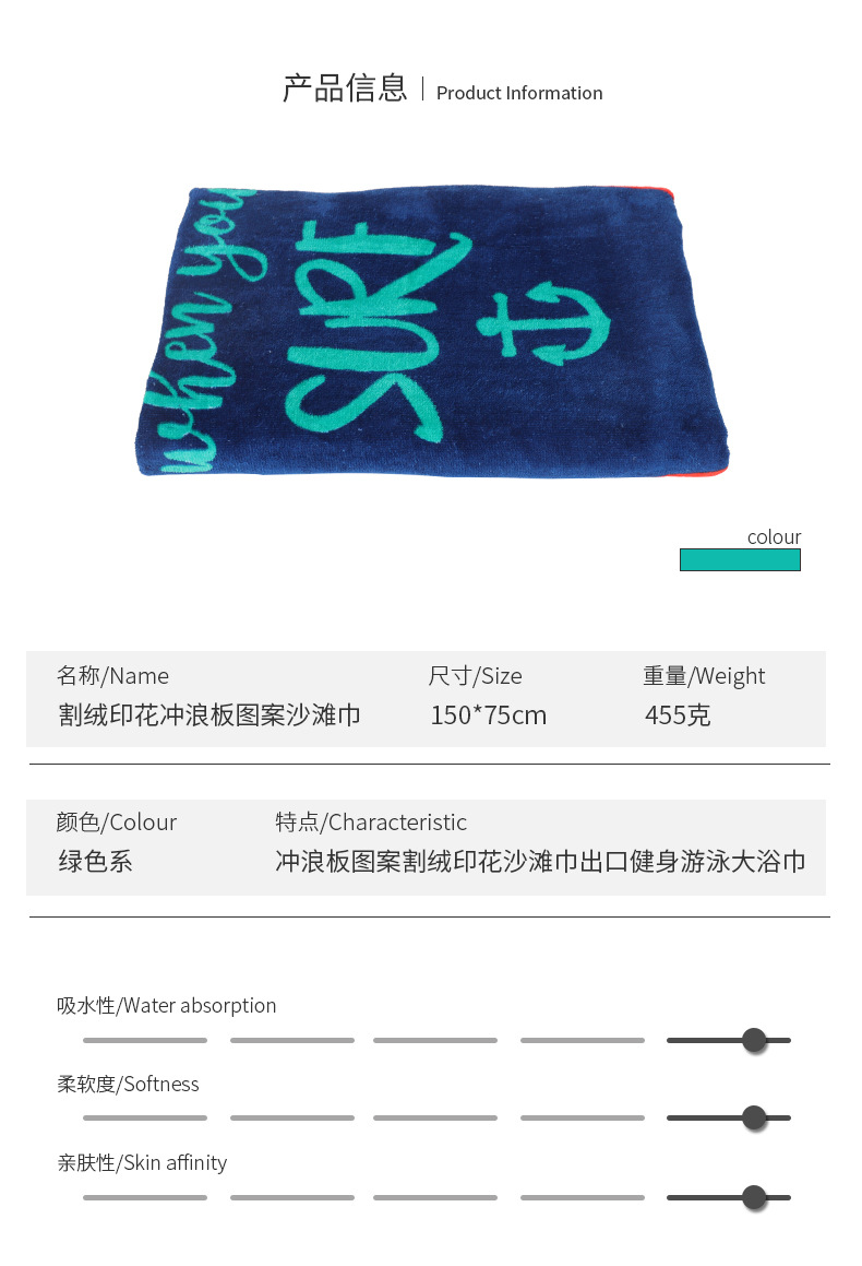 인쇄된 목욕타월 비치 타월 서핑 보드 패턴 비치타월 컬러 목욕타월 150*75cm 연장면 목욕타월스토어 가기