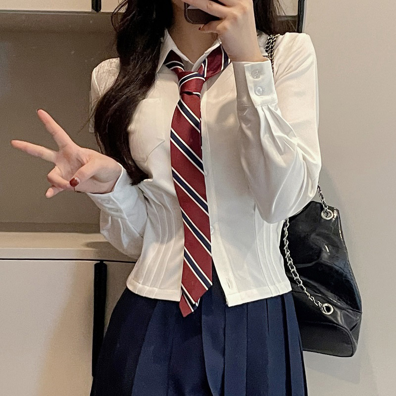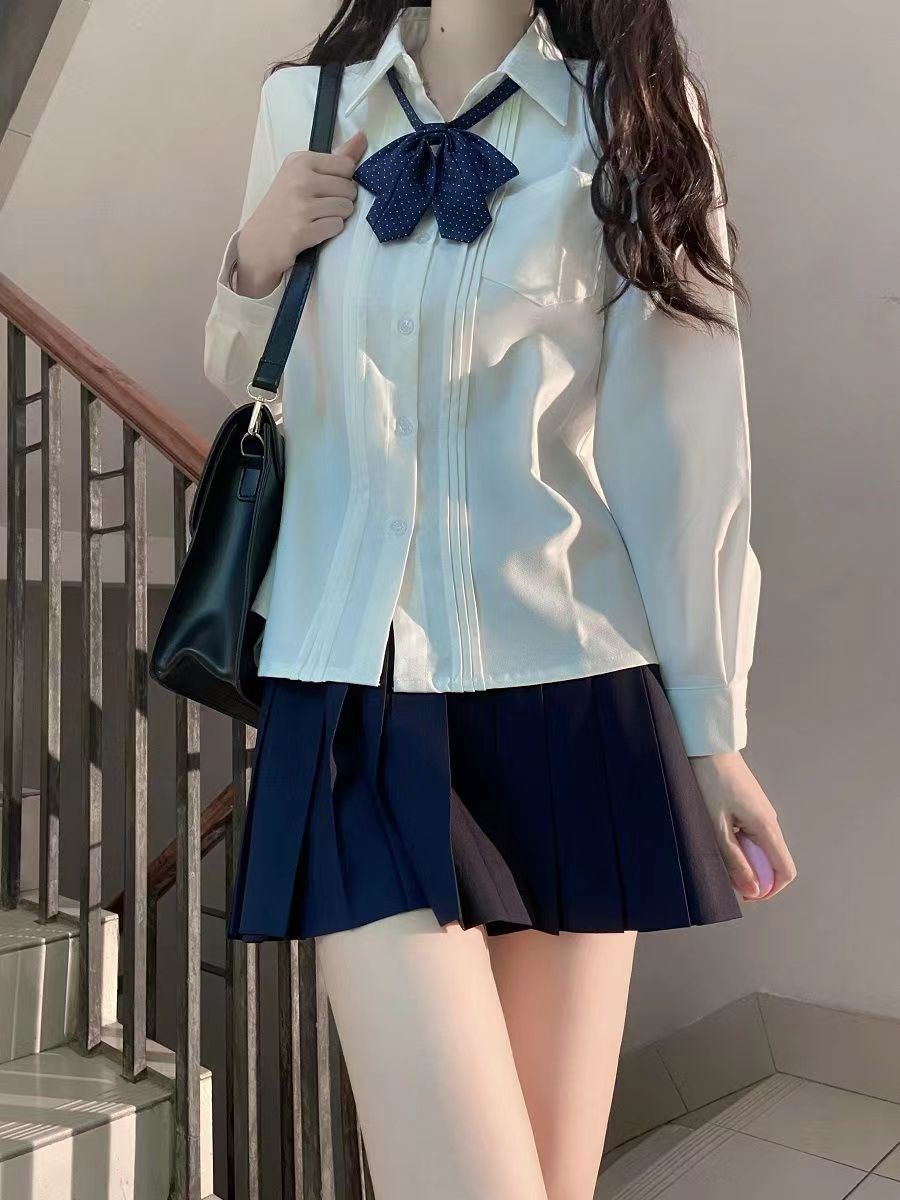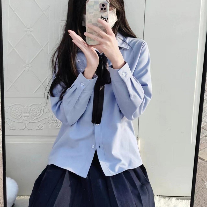Jk 오리지널 긴팔 단색 셔츠 여자 가을과 겨울 대학 스타일 유니폼 우유 흰색 오르간 주름 셔츠 공장 도매스토어 가기