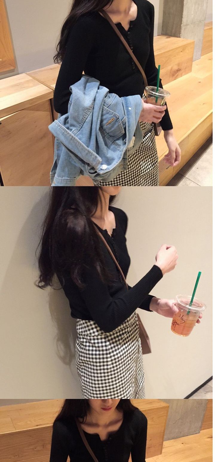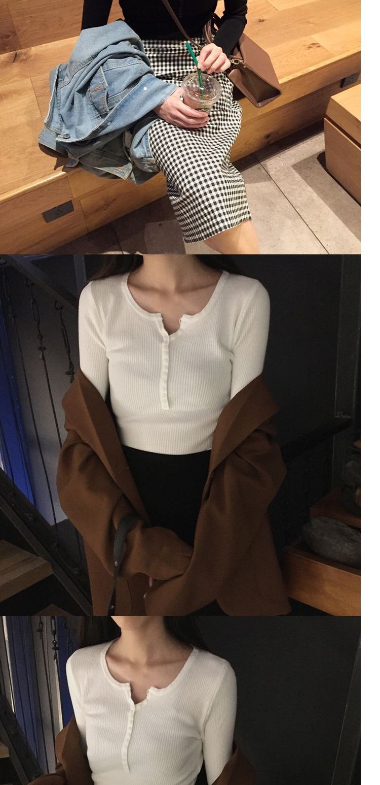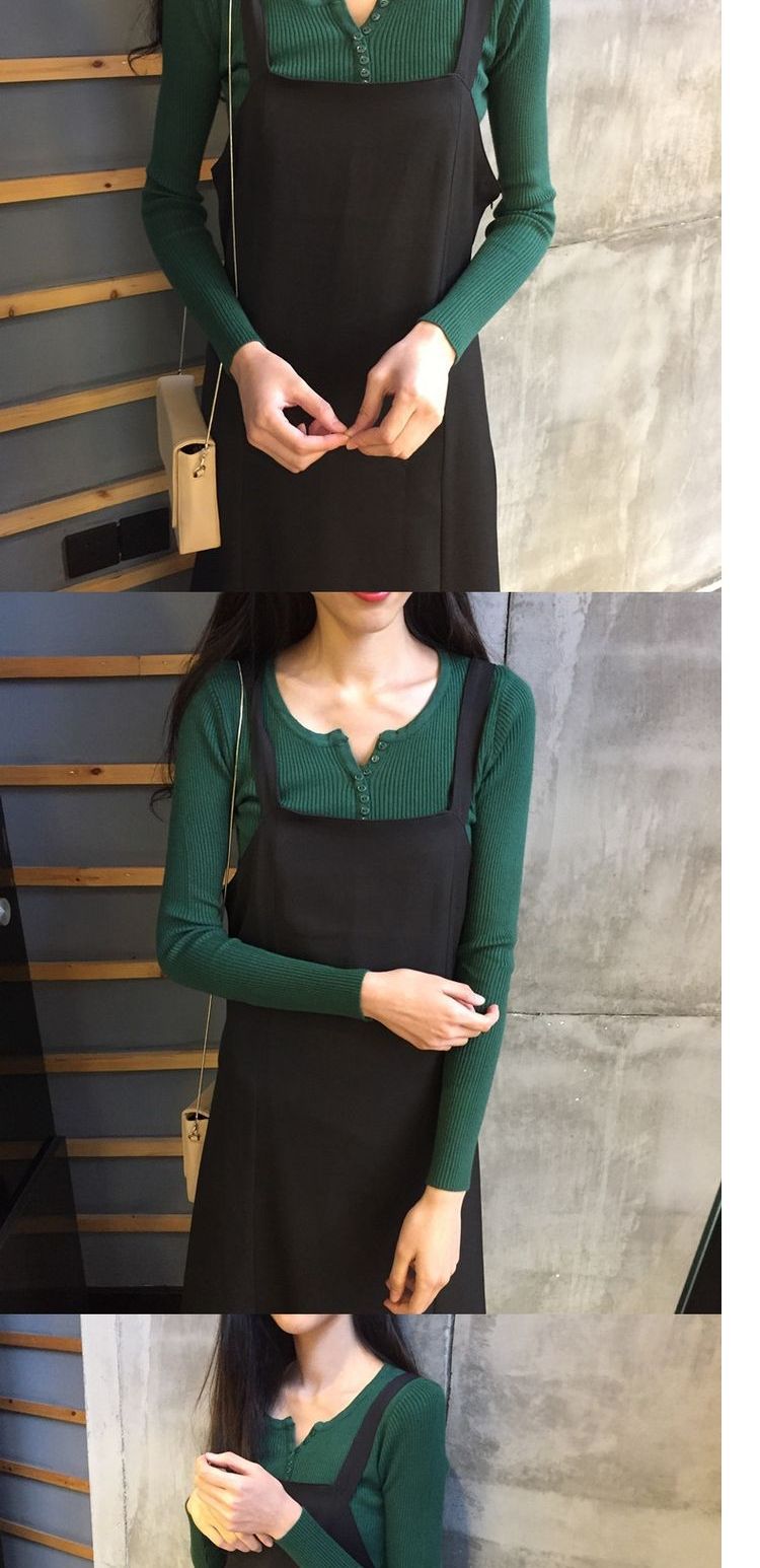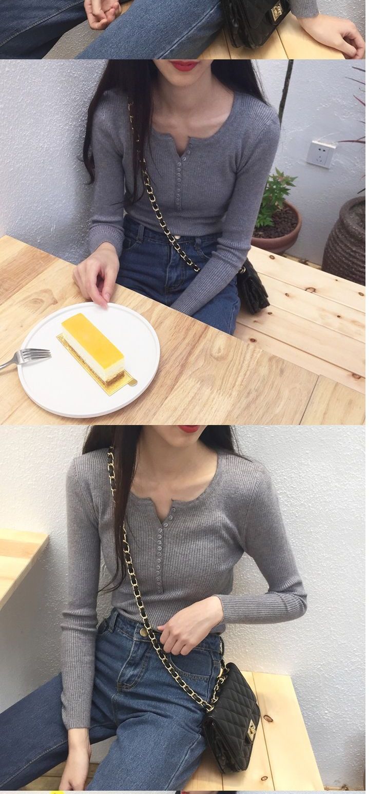 가을과 겨울 여성용 V-넥 풀오버 니트베이스 셔츠 학생 슬리밍 긴팔 티셔츠 세련된 타이트 탑 내부 스웨터스토어 가기
