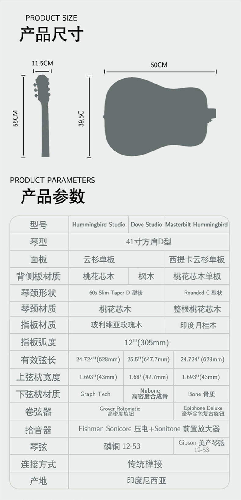 Ipf J200 벌새 비둘기 Masterbilt 전기 상자 민속 어쿠스틱 기타 얼굴 싱글 풀 베니어