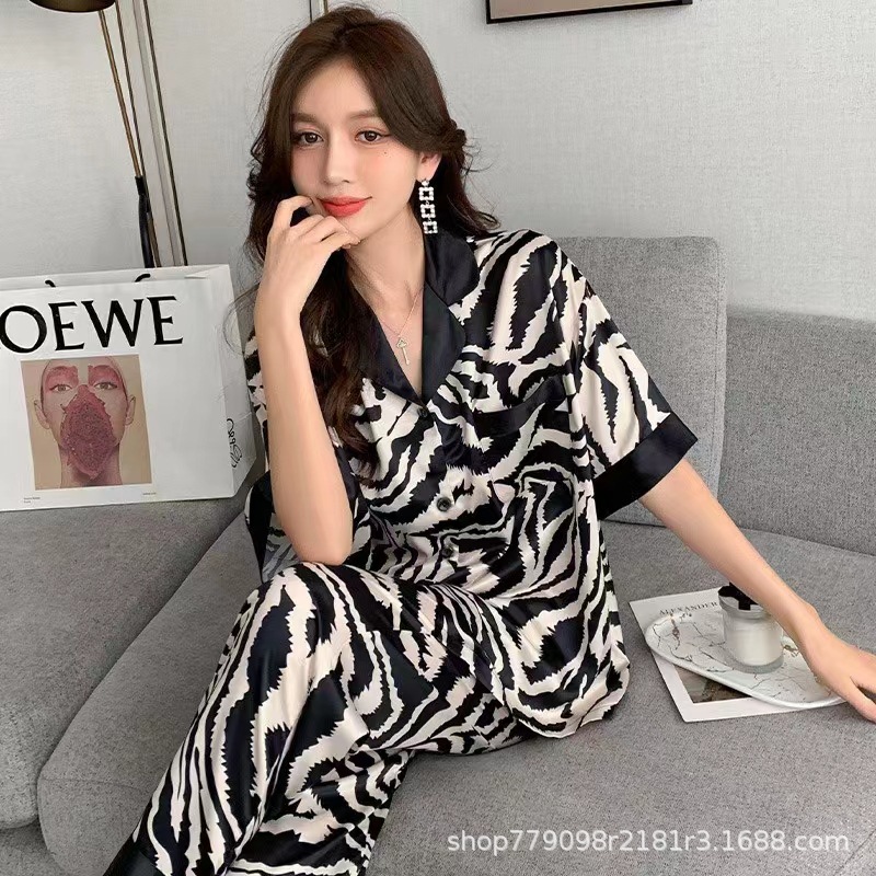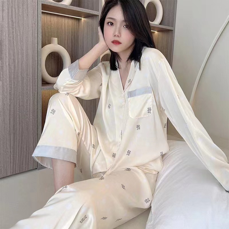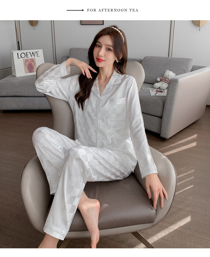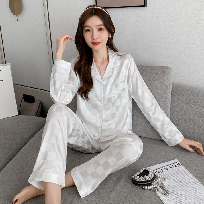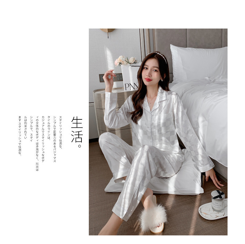 여성을위한 뜨거운 판매 국경 간 대외 무역 잠옷 봄, 가을 자카드 얼음 실크 인터넷 연예인 국경 간 ins 긴팔 한국 스타일 가정 의류
