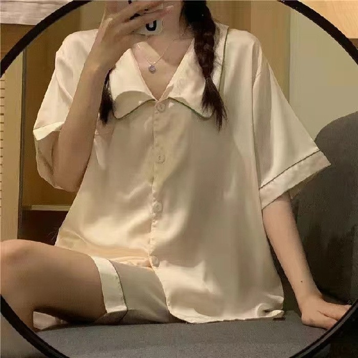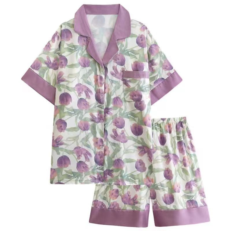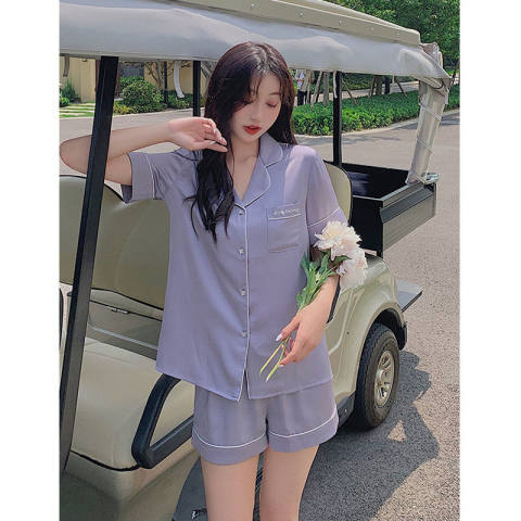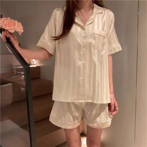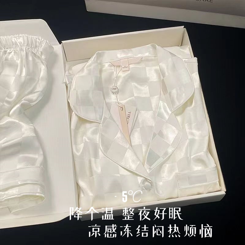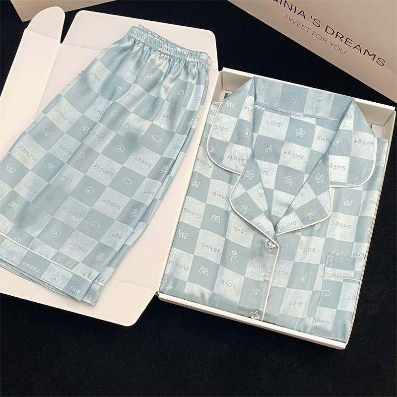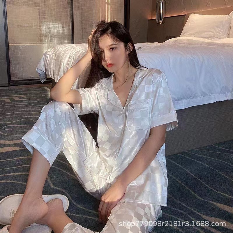 여성을위한 뜨거운 판매 국경 간 대외 무역 잠옷 봄, 가을 자카드 얼음 실크 인터넷 연예인 국경 간 ins 긴팔 한국 스타일 가정 의류