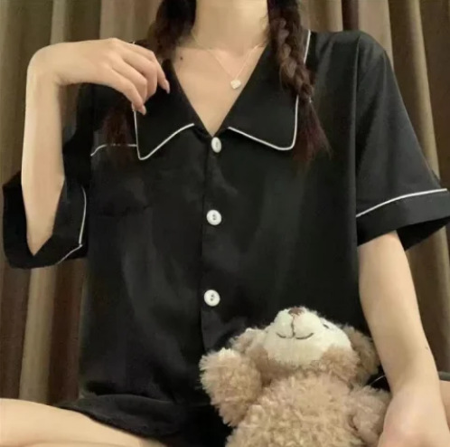 • [하이 퀄리티 추천 버전] 인형 칼라 블랙 반팔 반바지