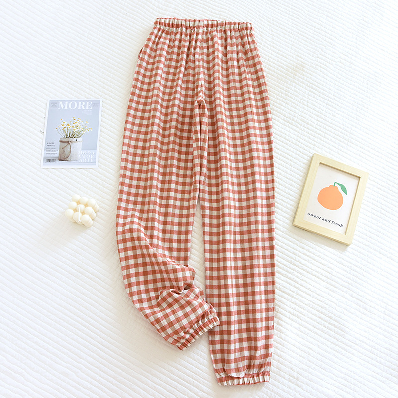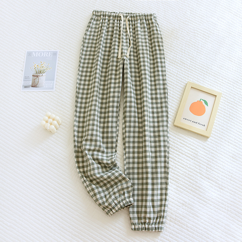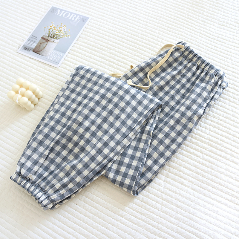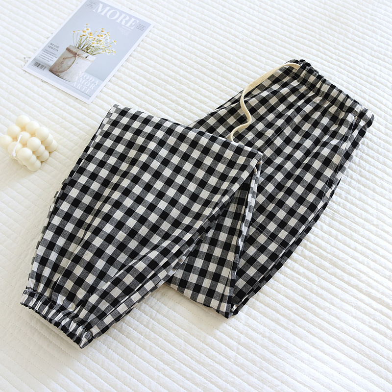 커플 파자마 팬츠 플러스 사이즈 넥업 홈 팬츠 심플 체크 스타일 타이트 입 남성용 및 여성용 아우터 착용 사계절 얇은 바지스토어 가기