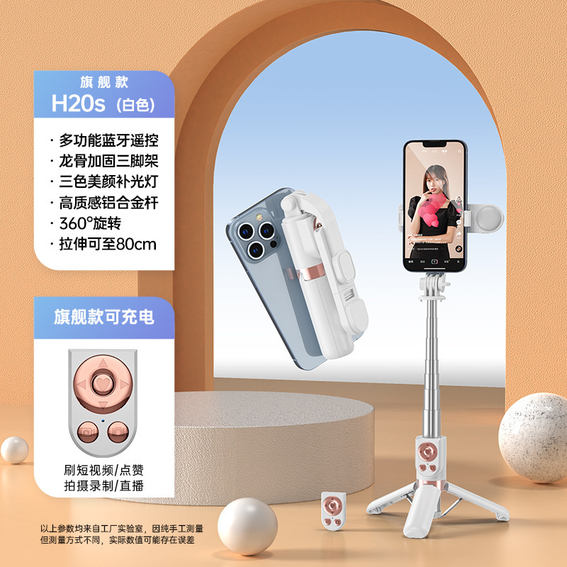 H10S/H20S 셀카 스틱 충전식 라이트 필 라이트 뷰티 라이브 일체형 알루미늄 합금 휴대용 삼각대 브래킷