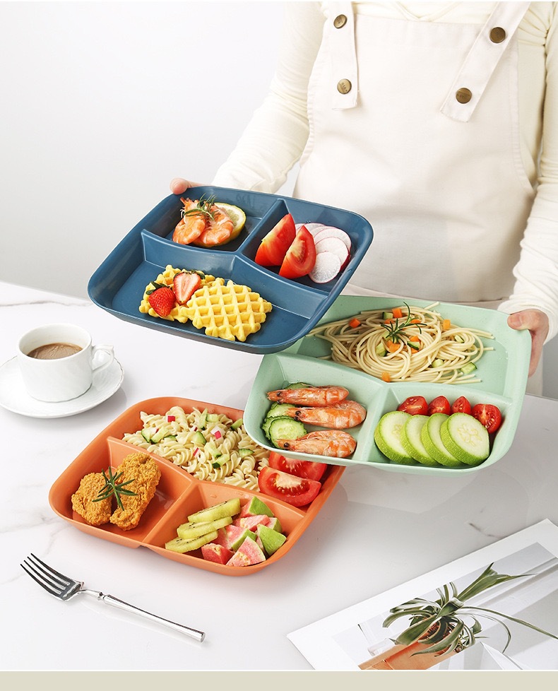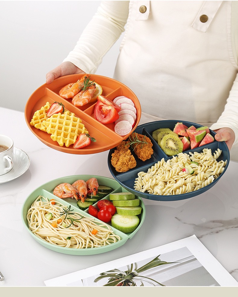 식사 접시, 밀짚 접시, 3칸 고급 과일 접시, 정량 플라스틱 접시, 상업용 도매스토어 가기