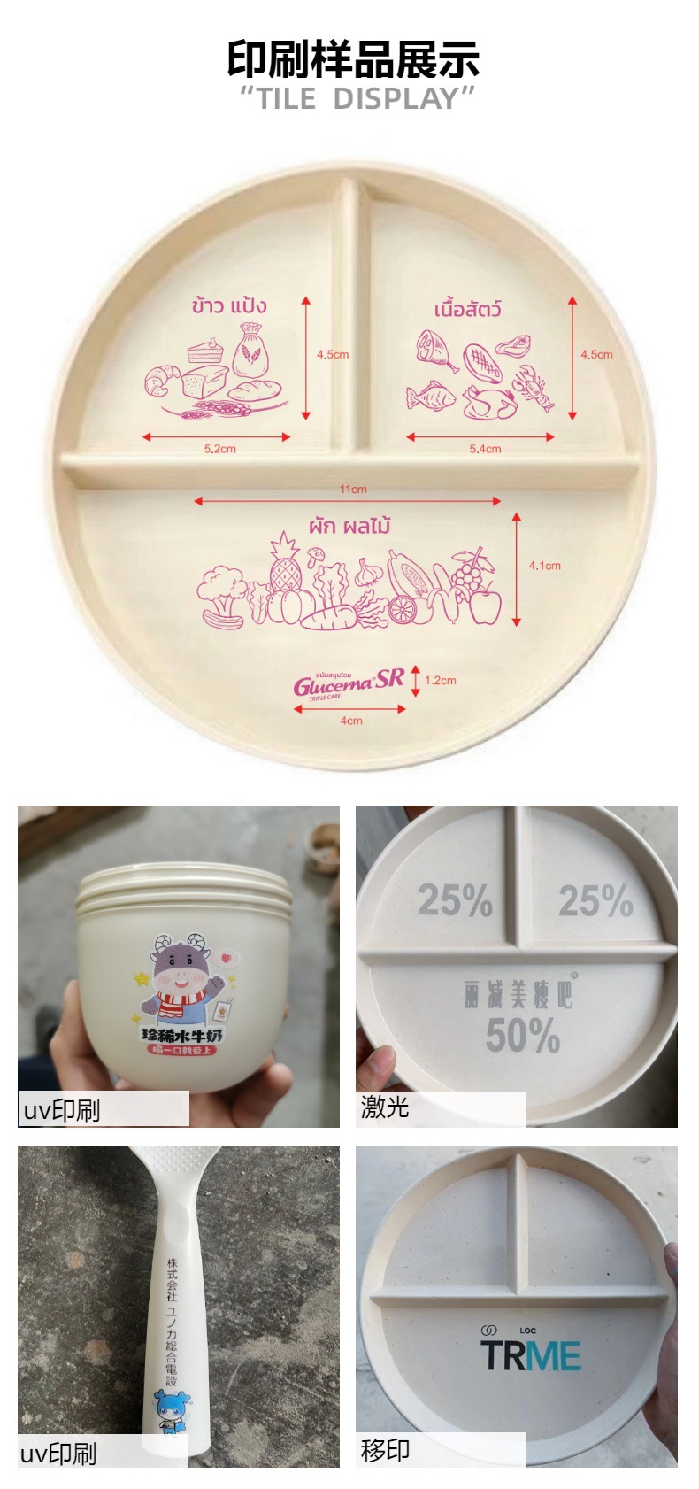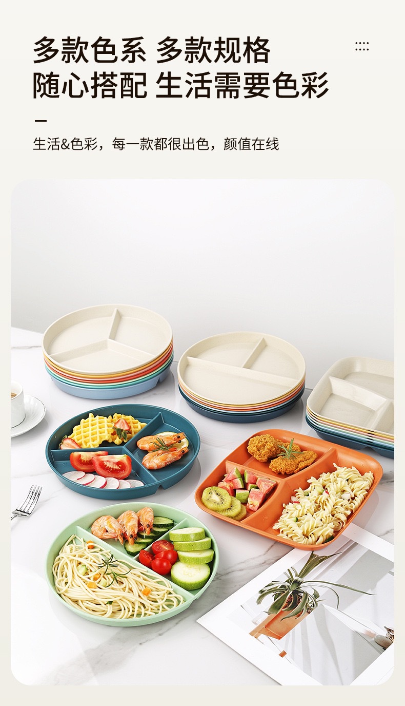 식사 접시, 밀짚 접시, 3칸 고급 과일 접시, 정량 플라스틱 접시, 상업용 도매