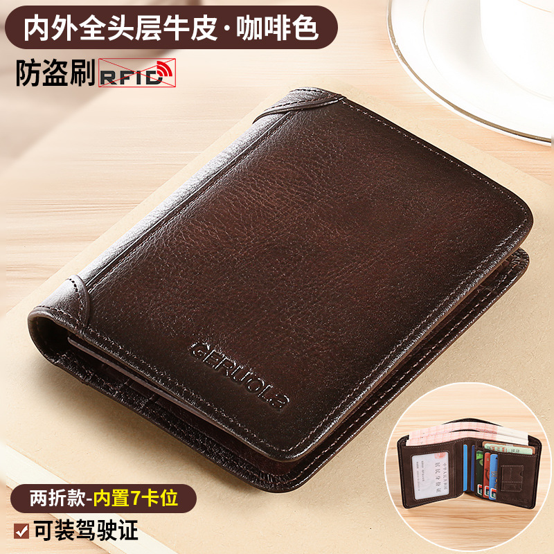 크로스 보더 남성 지갑 아마존 폭발 가죽 멀티 카드 소가죽 짧은 지갑 지갑 지갑 남성 도매