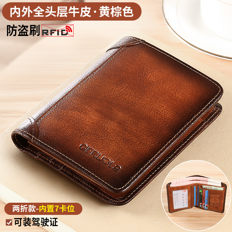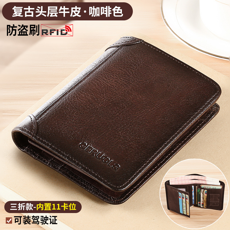 크로스 보더 남성 지갑 아마존 폭발 가죽 멀티 카드 소가죽 짧은 지갑 지갑 지갑 남성 도매스토어 가기