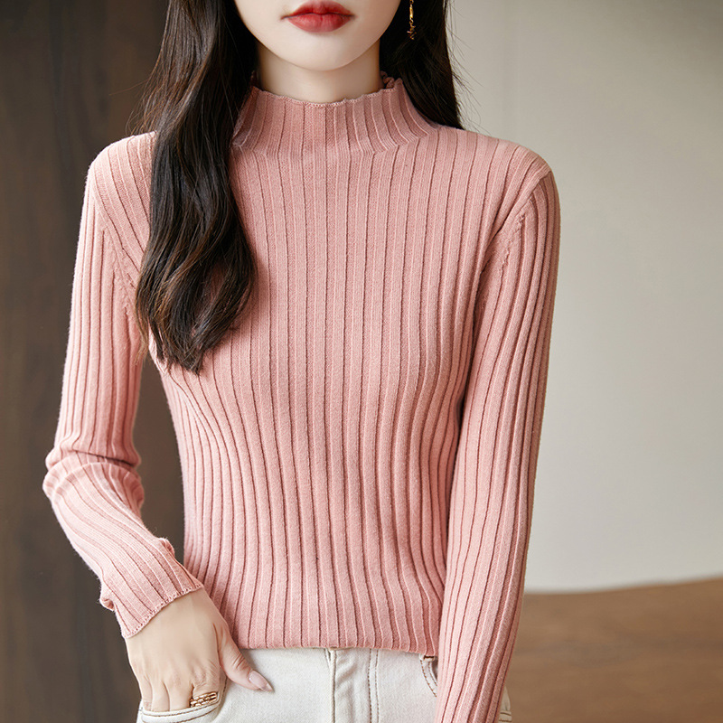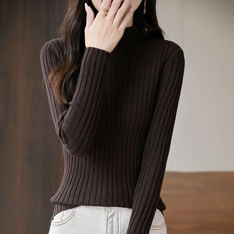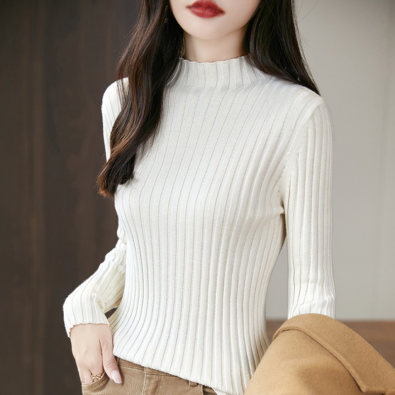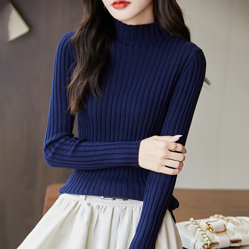 여성용 하프 터틀넥 스트라이프 니트 베이스 레이어 2025 가을 겨울 신상 순면 니트웨어 슬림핏 이너웨어 스웨터