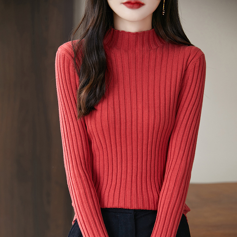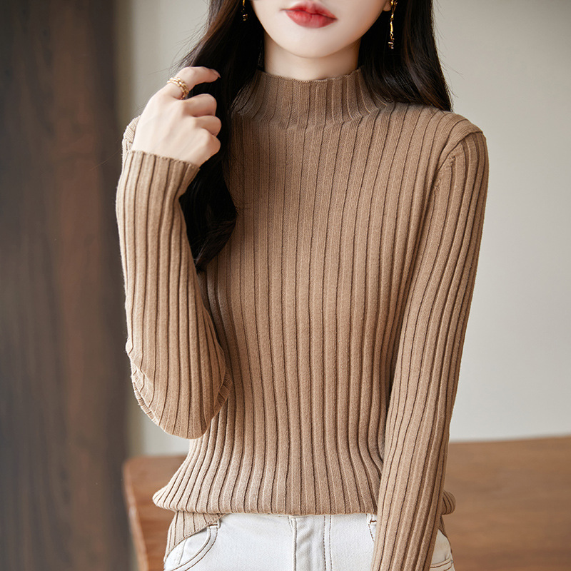 여성용 하프 터틀넥 스트라이프 니트 베이스 레이어 2025 가을 겨울 신상 순면 니트웨어 슬림핏 이너웨어 스웨터스토어 가기