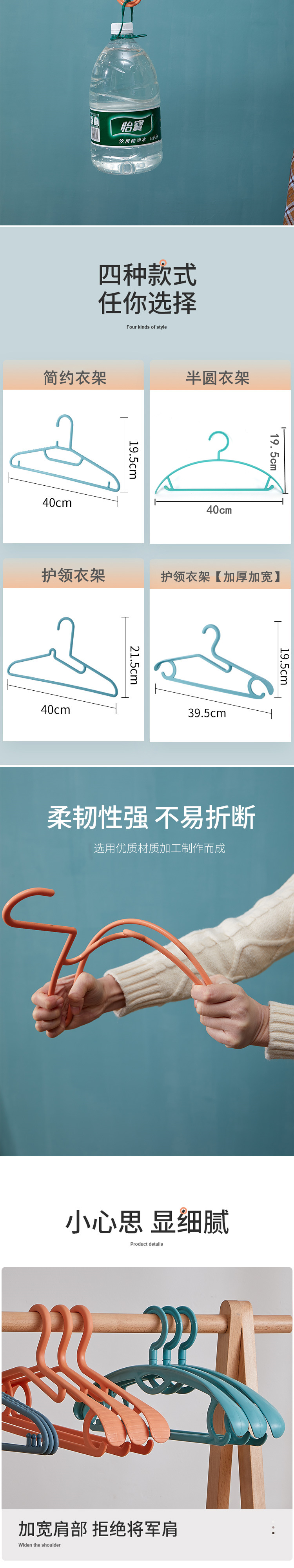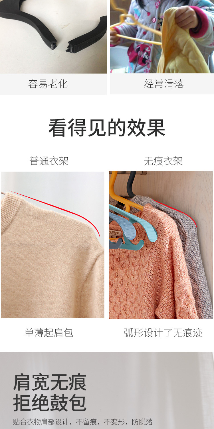 목 보호 걸이, 다기능 두꺼운 넓은 어깨 기숙사 두꺼운 옷 걸이, 가정용 옷 이음매없는 선반 플라스틱 옷 걸이