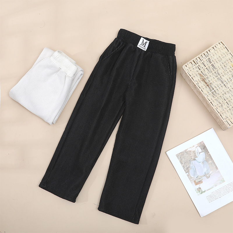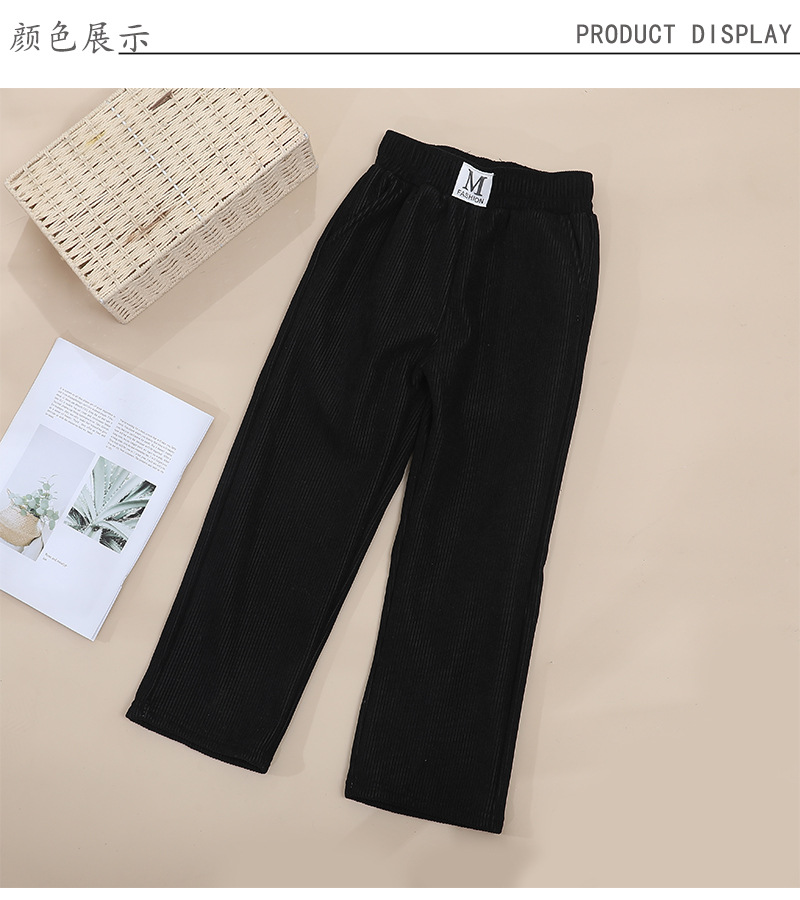 소녀의 바지 가을과 겨울 세련된 빅 보이 소녀의 셔닐 기모 스트레이트 팬츠 어린이 캐주얼 와이드 레그 팬츠