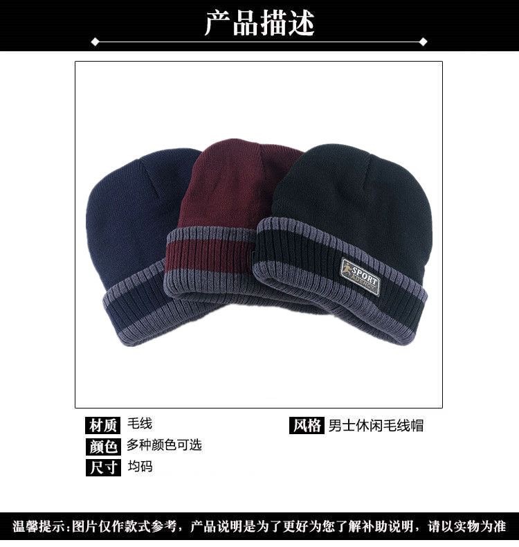 2022 새로운 남성 울 모자 기모 두꺼운 따뜻한 모자 패션 패치 귀 보호 니트 청소년 모자