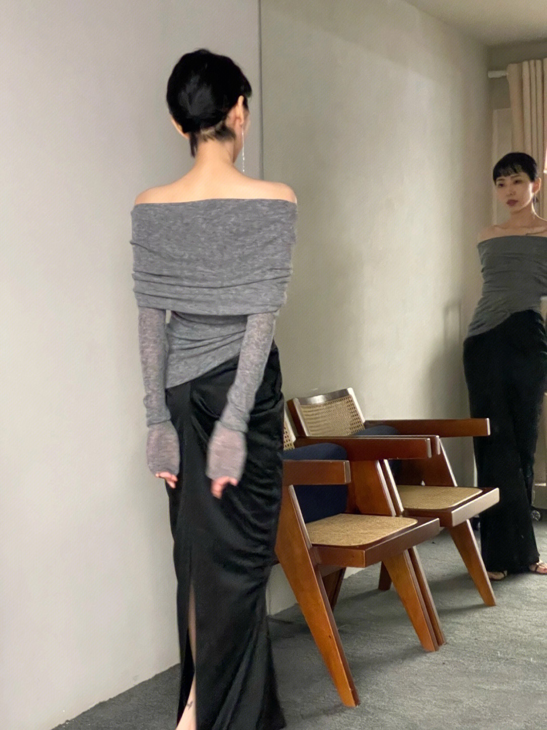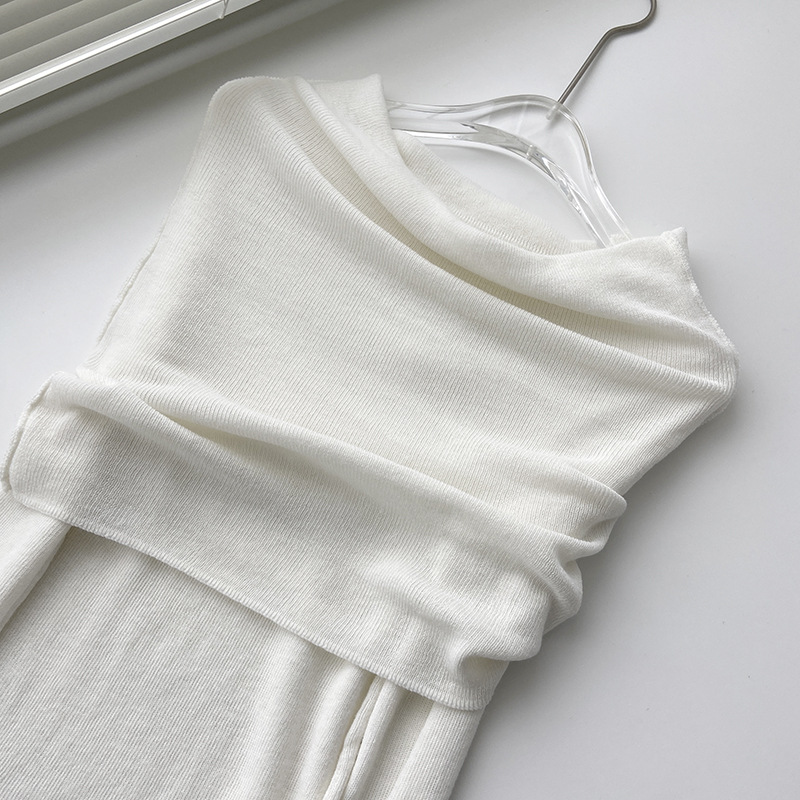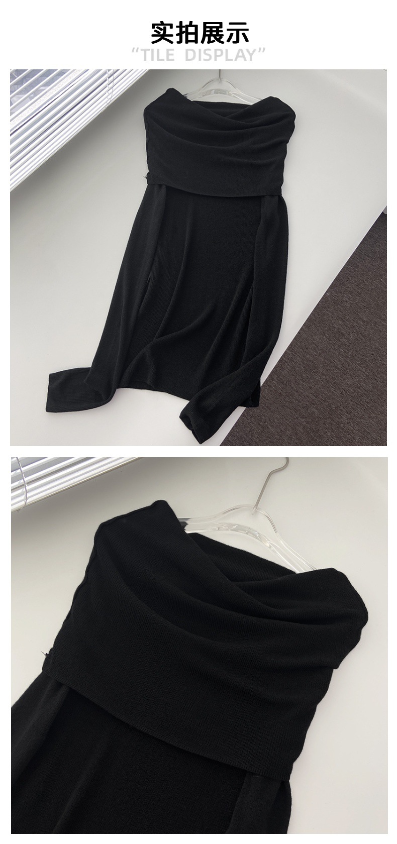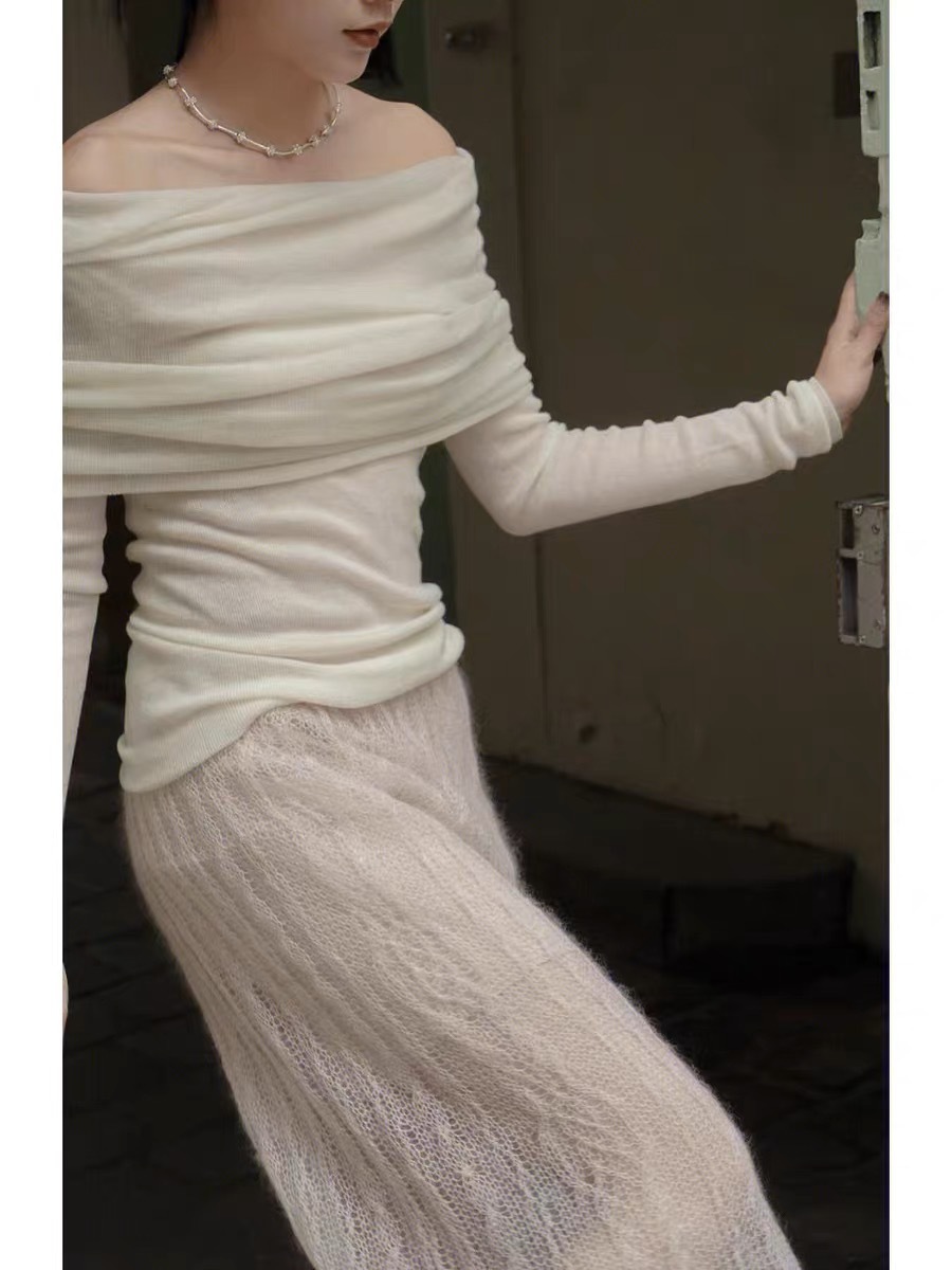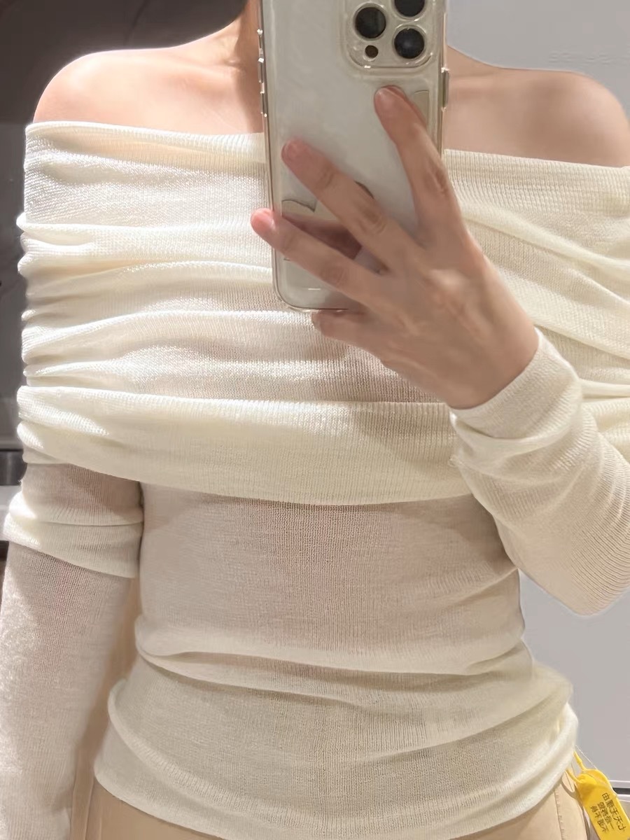 纯欲软糯的针织一字肩上衣