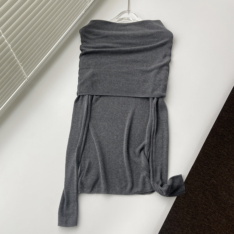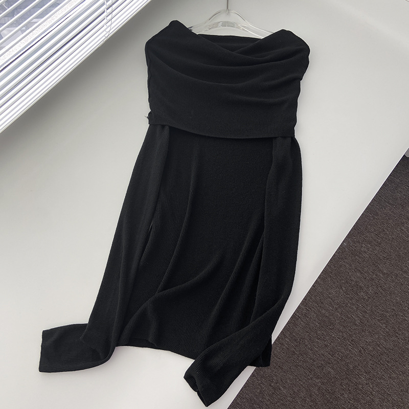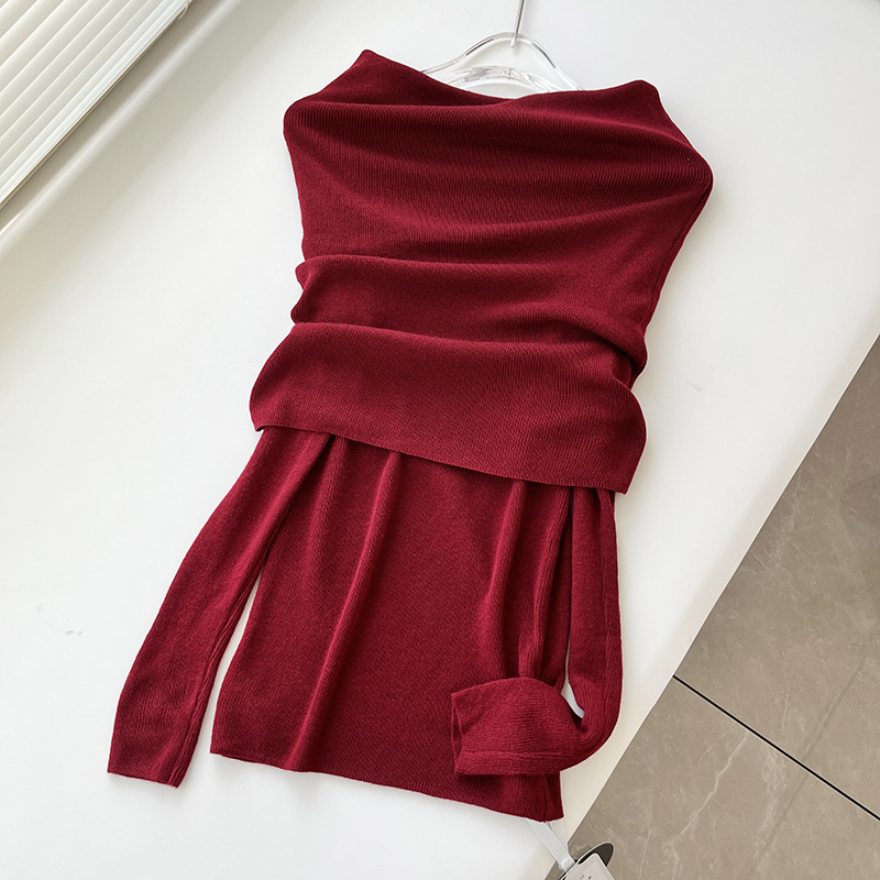 프렌치 스타일 오프 숄더 젠틀 울 니트 탑 여성용 디자인 센스 슬림핏 슬리밍 오프 숄더 긴팔 스웨터 2131