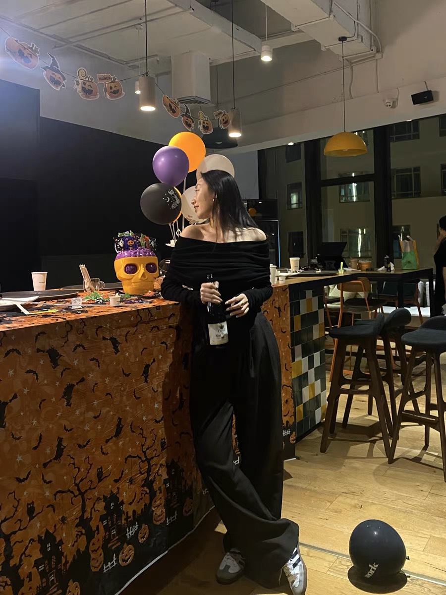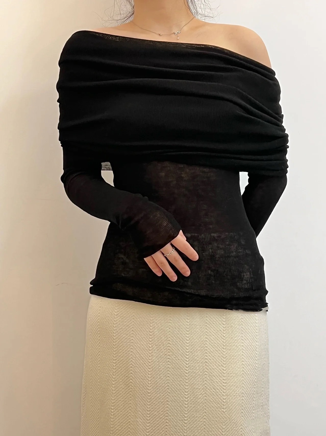 프렌치 스타일 오프 숄더 젠틀 울 니트 탑 여성용 디자인 센스 슬림핏 슬리밍 오프 숄더 긴팔 스웨터 2131스토어 가기