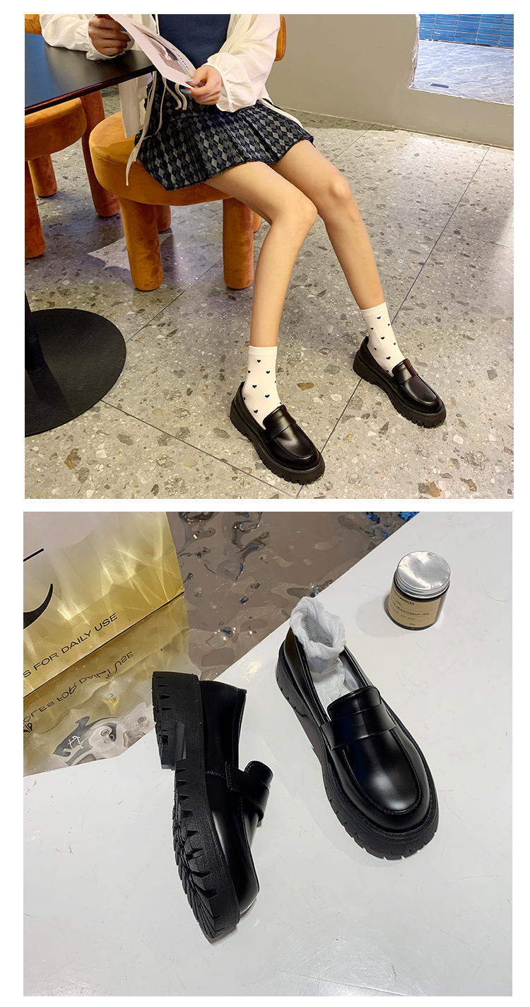 JK 일본 영국 스타일 작은 가죽 신발 여성의 2024 새로운 스타일 우아한 레트로 대학 싱글 레이어 신발 여성 플랫폼 로퍼스토어 가기