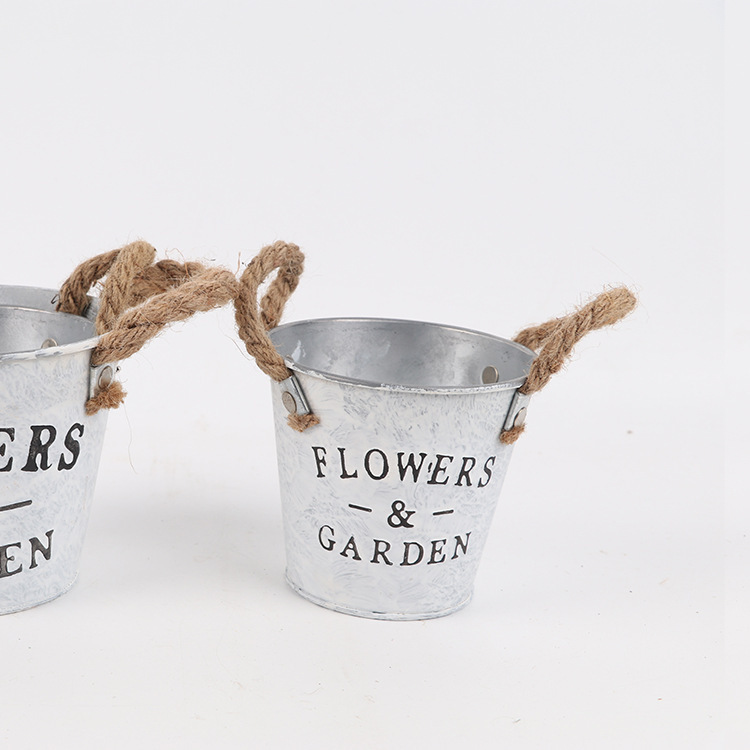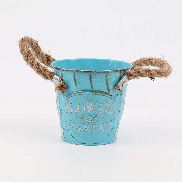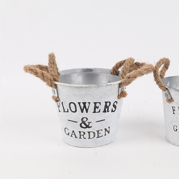목가적 인 대마 밧줄 귀 꽃 배럴 철 배럴 말린 꽃 가게 장식 화분 꽃 용기 철 작은 꽃 재고