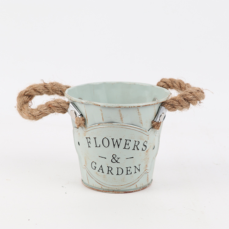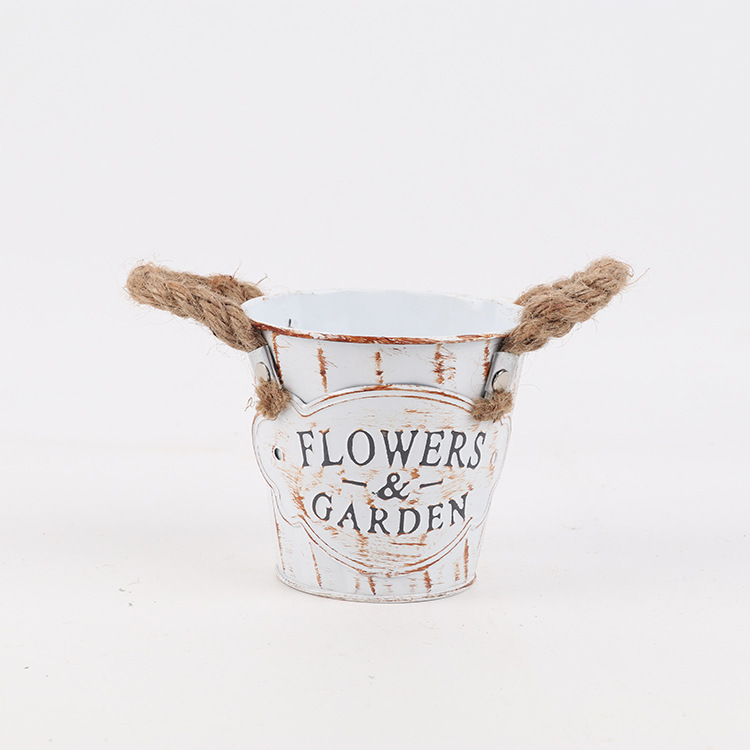 목가적 인 대마 밧줄 귀 꽃 배럴 철 배럴 말린 꽃 가게 장식 화분 꽃 용기 철 작은 꽃 재고스토어 가기