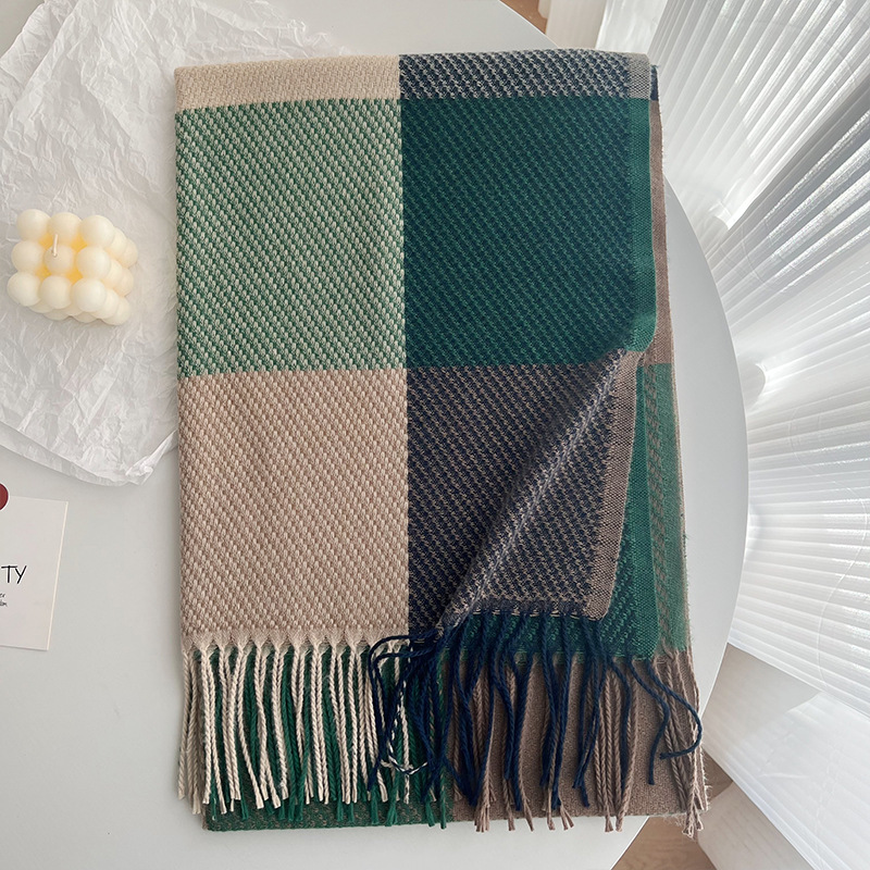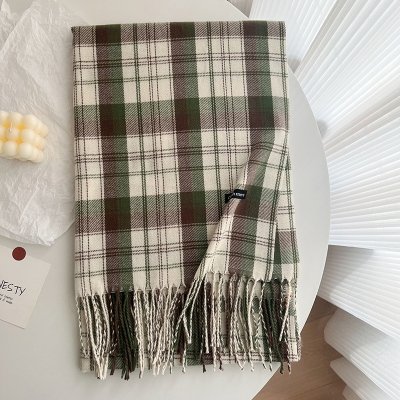 2023 남성과 여성을위한 새로운 한국 스타일 겨울 캐시미어 빈티지 격자 무늬 스카프 일본식 술 숄 따뜻한 스카프