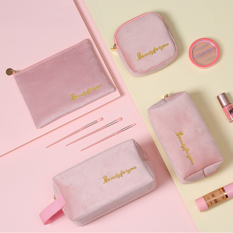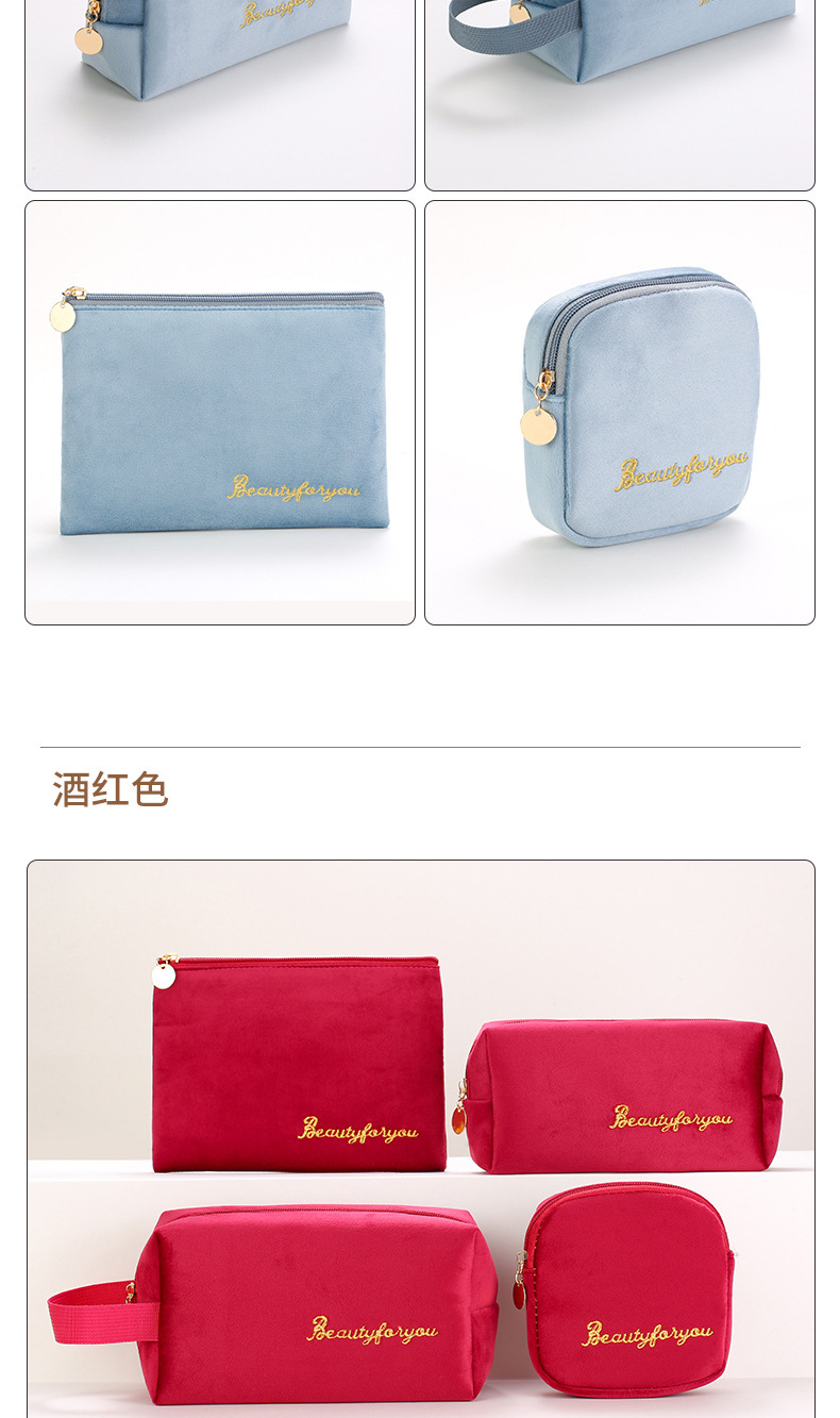 벨벳 천 화장품 가방 플란넬 손 메이크업 가방 휴대용 입 빨간 봉투 여행 세면 도구 보관 가방 세트