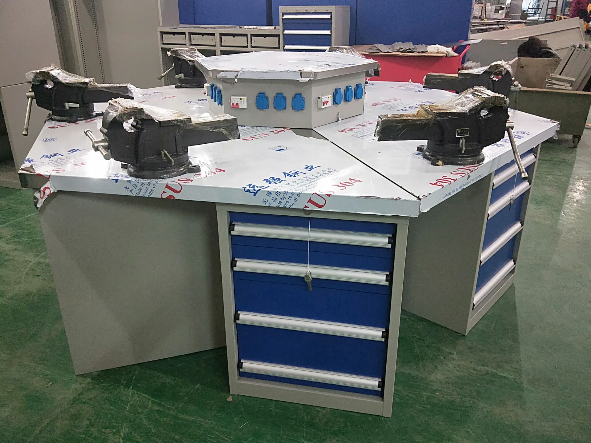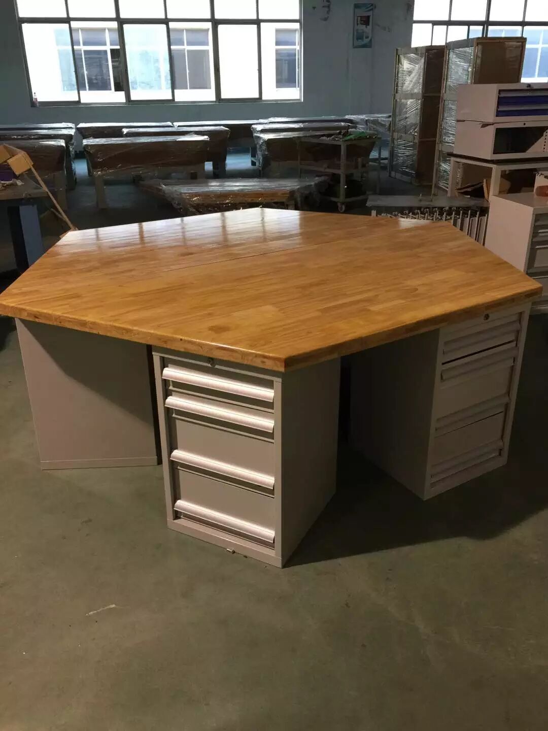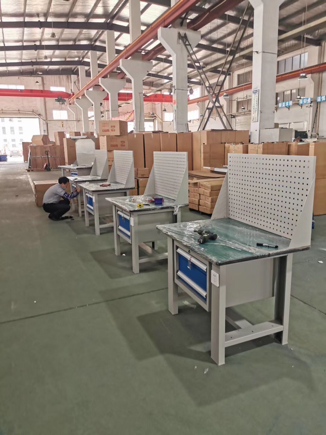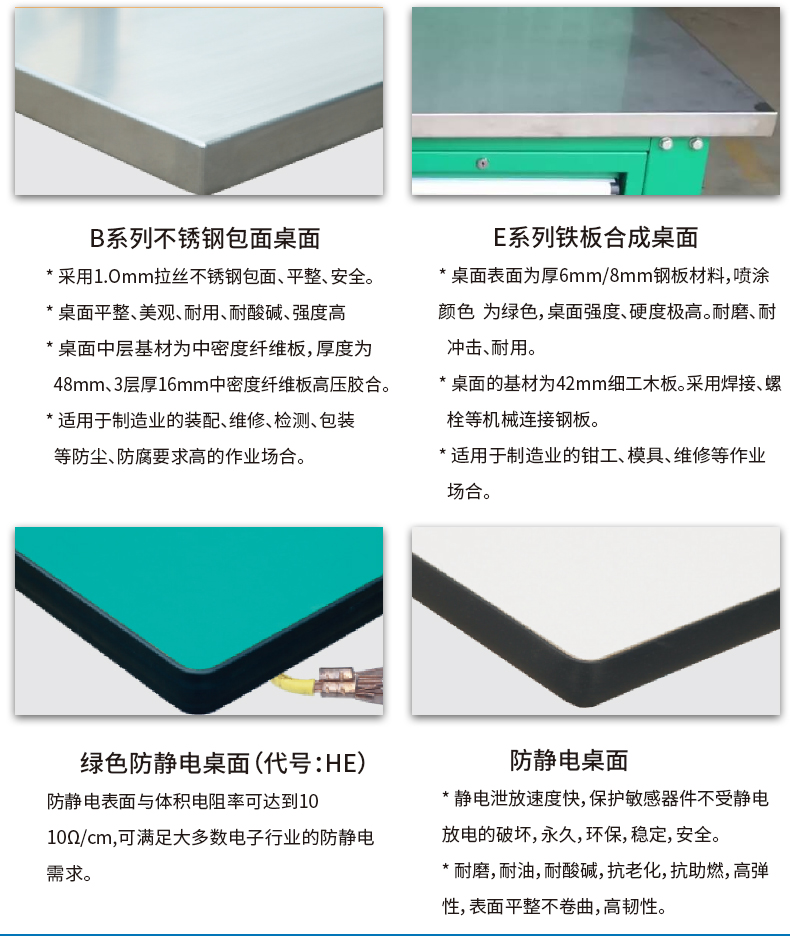 2.确定桌子的台面要求,常规用复合台面的占多数,即50mm的高压合成板上黏贴一层胶皮,胶皮有耐冲击,适合敲敲打打不易变形,或者耐磨胶皮,防静电胶皮等,相对价格实惠,性价比高!或者可选择包铁皮,包不锈钢,压钢板,或实木台面,可咨询客服,客服会根据您的要求一一为您解答。