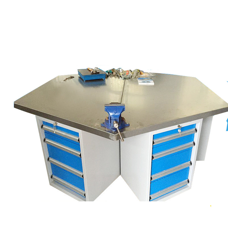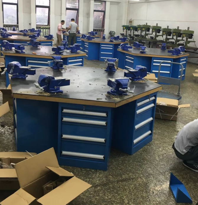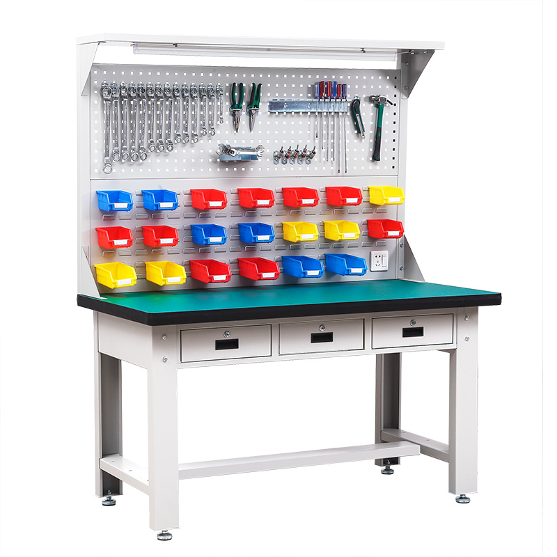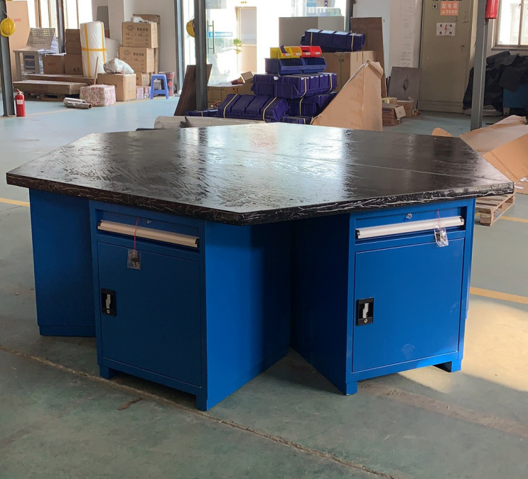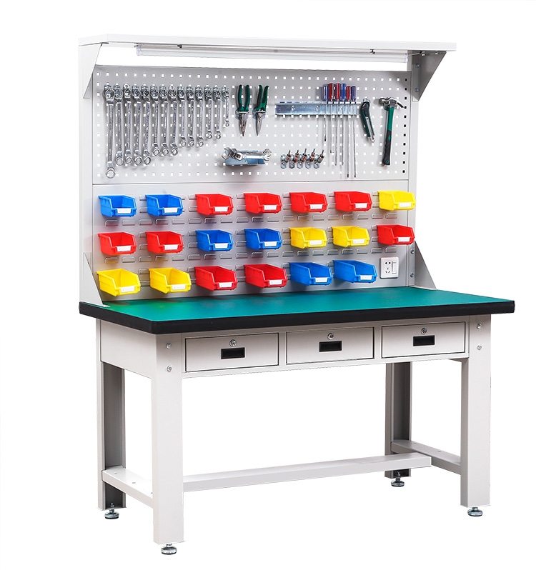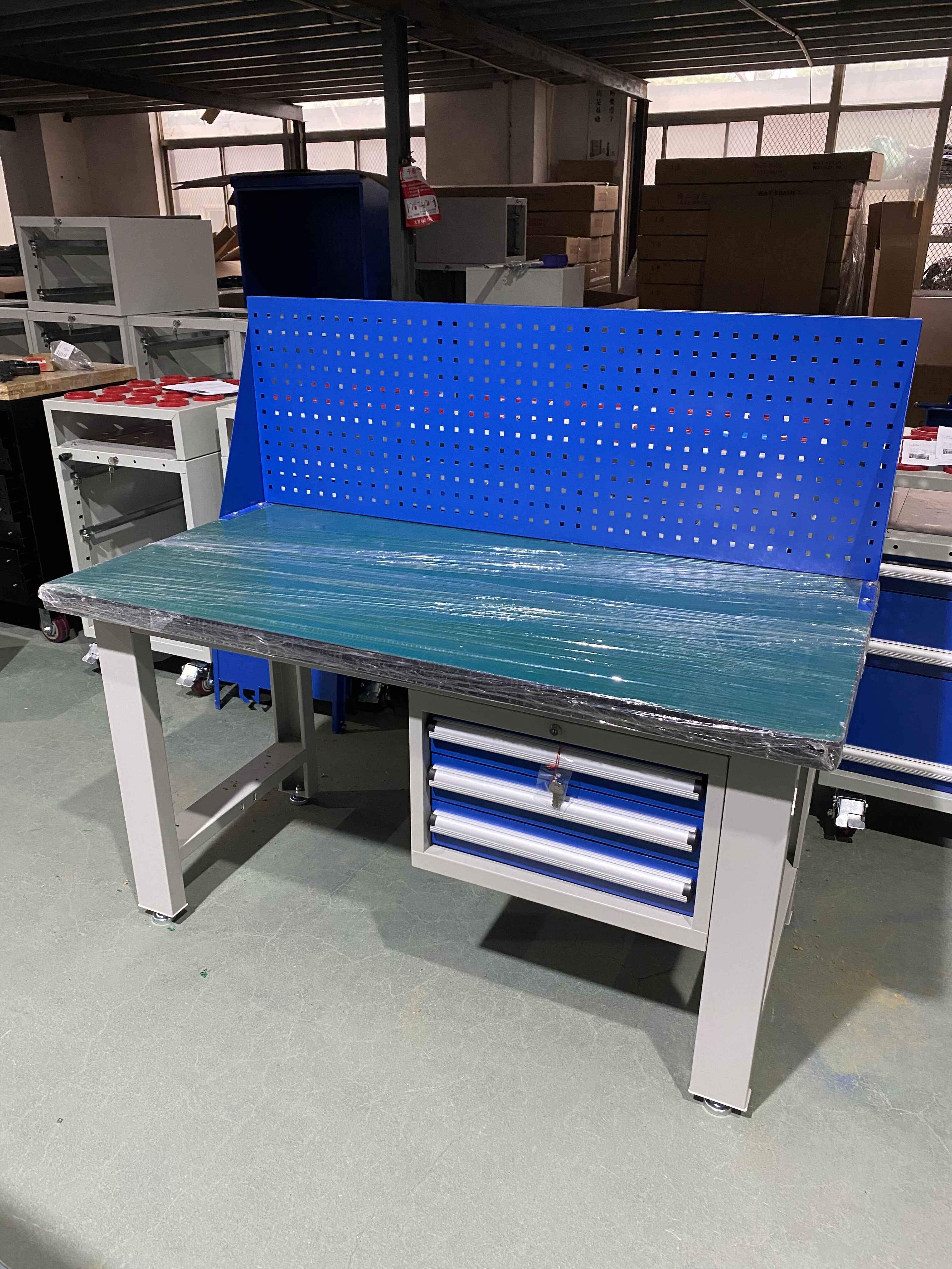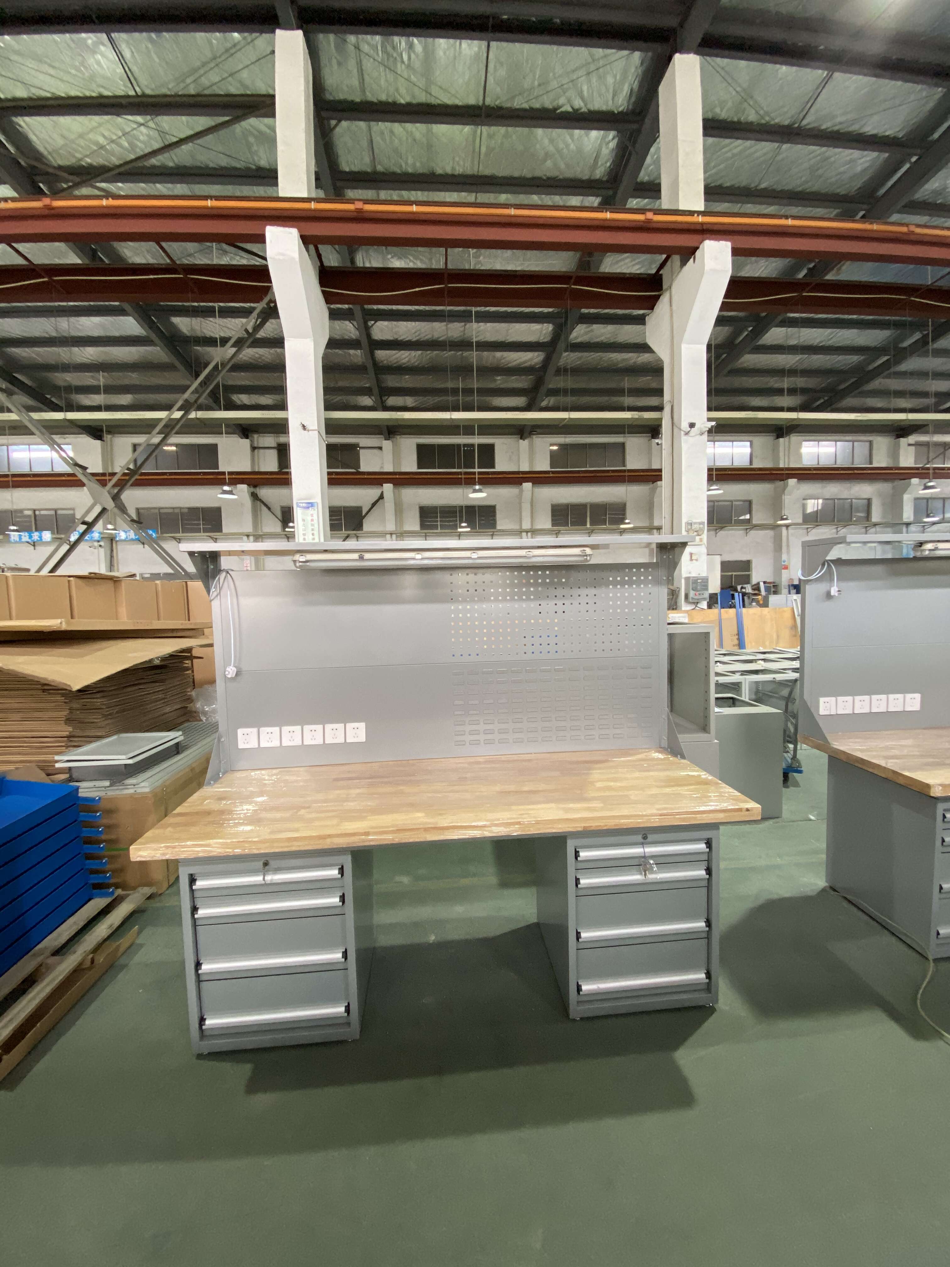 2.确定桌子的台面要求,常规用复合台面的占多数,即50mm的高压合成板上黏贴一层胶皮,胶皮有耐冲击,适合敲敲打打不易变形,或者耐磨胶皮,防静电胶皮等,相对价格实惠,性价比高!或者可选择包铁皮,包不锈钢,压钢板,或实木台面,可咨询客服,客服会根据您的要求一一为您解答。