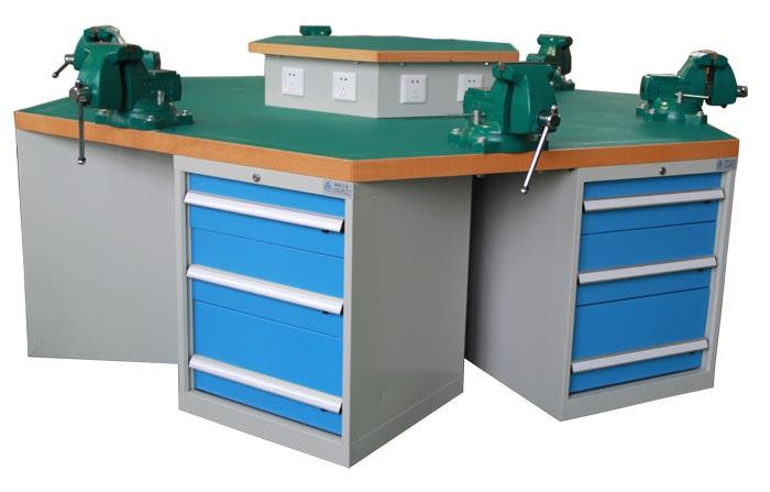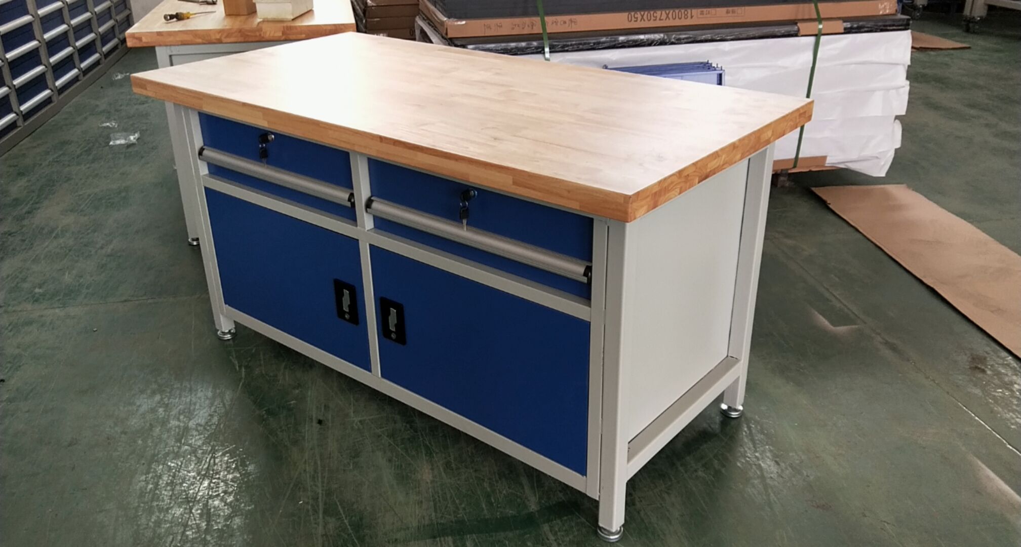 3.确定下方柜子的配置,正常下方配置6个重型工具柜,重型工具柜的配置较多的为1个抽屉+1个单开门柜,抽屉可放置一些小的工具,单开门柜内则可放置一些大类工具。工具柜亦可配置3抽或者4抽等等....