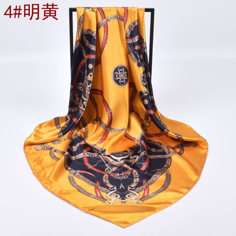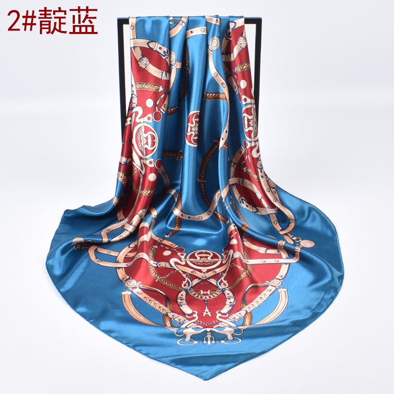 가을 새로운 크라운 체인 인쇄 새틴 큰 사각형 스카프 실크 스카프 도매 패션 유럽과 미국의 인공 실크 스카프스토어 가기