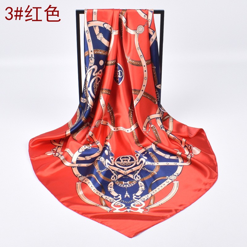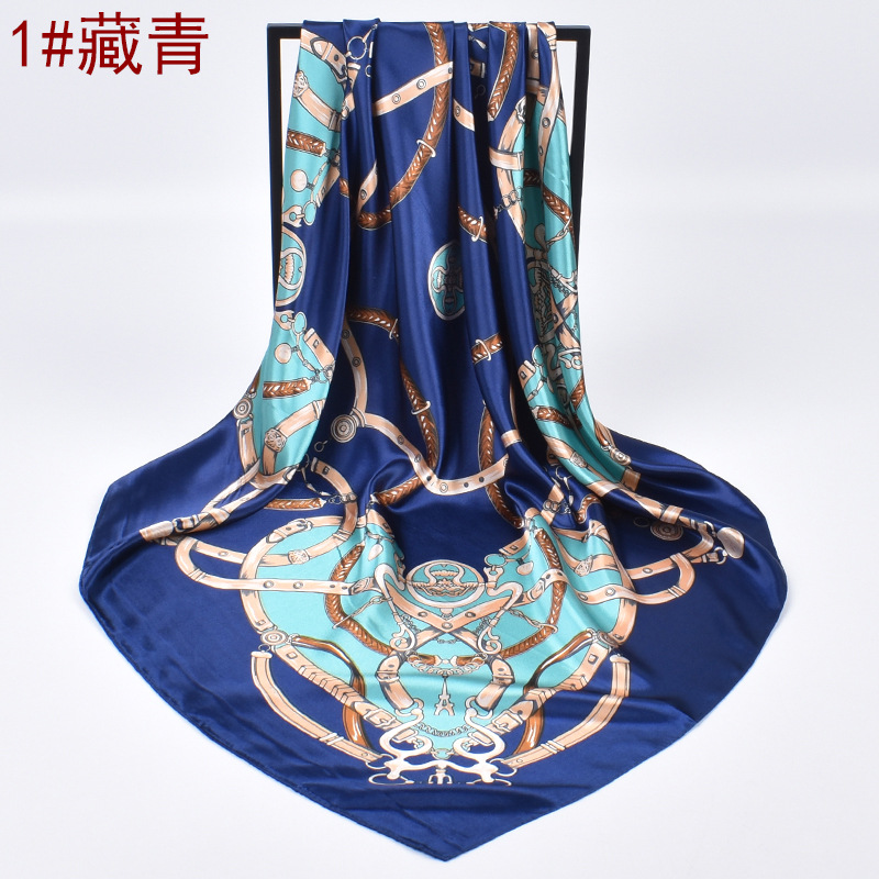 가을 새로운 크라운 체인 인쇄 새틴 큰 사각형 스카프 실크 스카프 도매 패션 유럽과 미국의 인공 실크 스카프