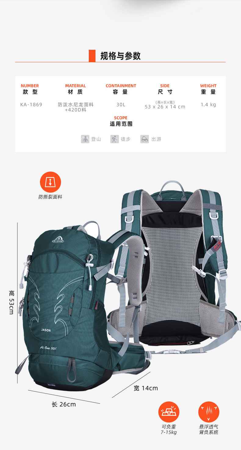 야외 스포츠 레저 대용량 다기능 여행 등산 하이킹 남성과 여성의 유행 발수 배낭