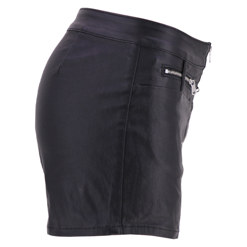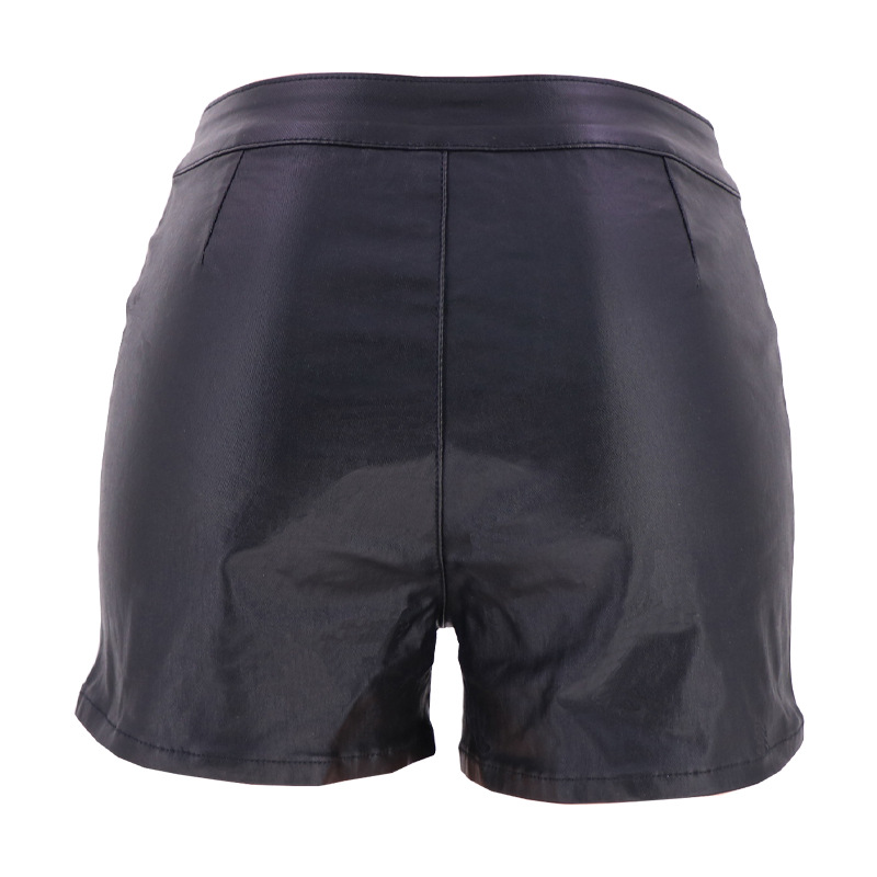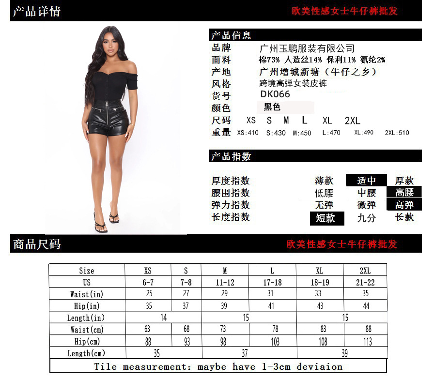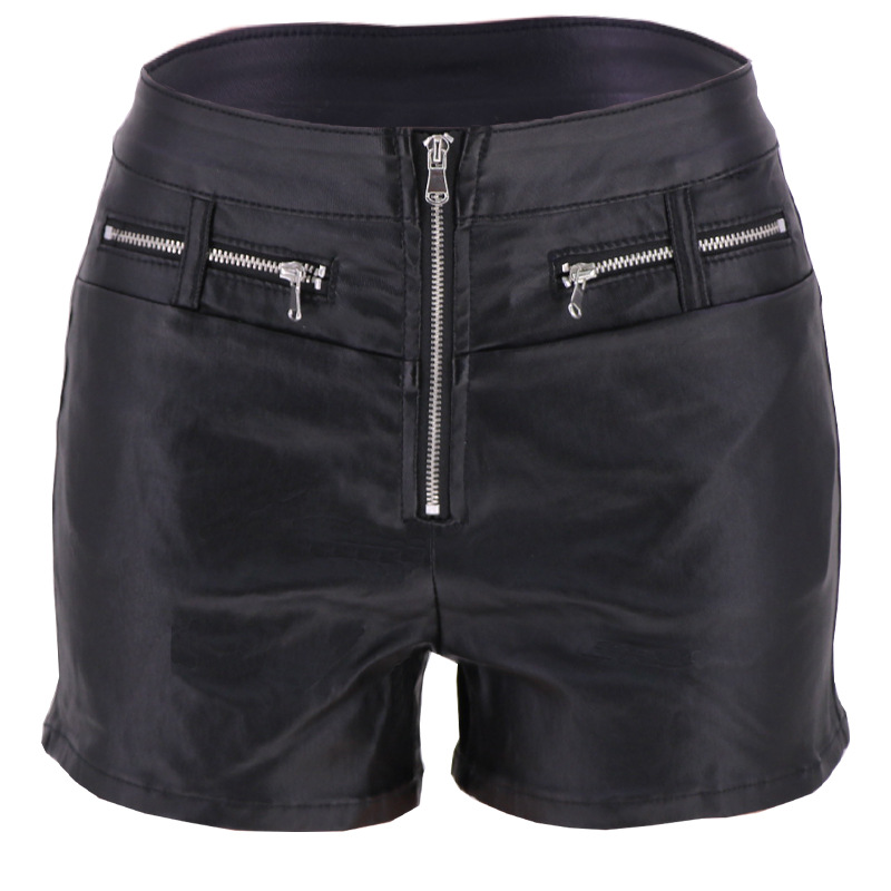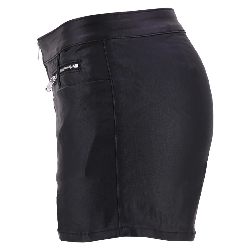 20025 새로운 가을, 겨울 여성 반바지 국경 간 PU 가죽 바지 가짜 포켓 도어 지퍼 데님 짧은 가죽 바지