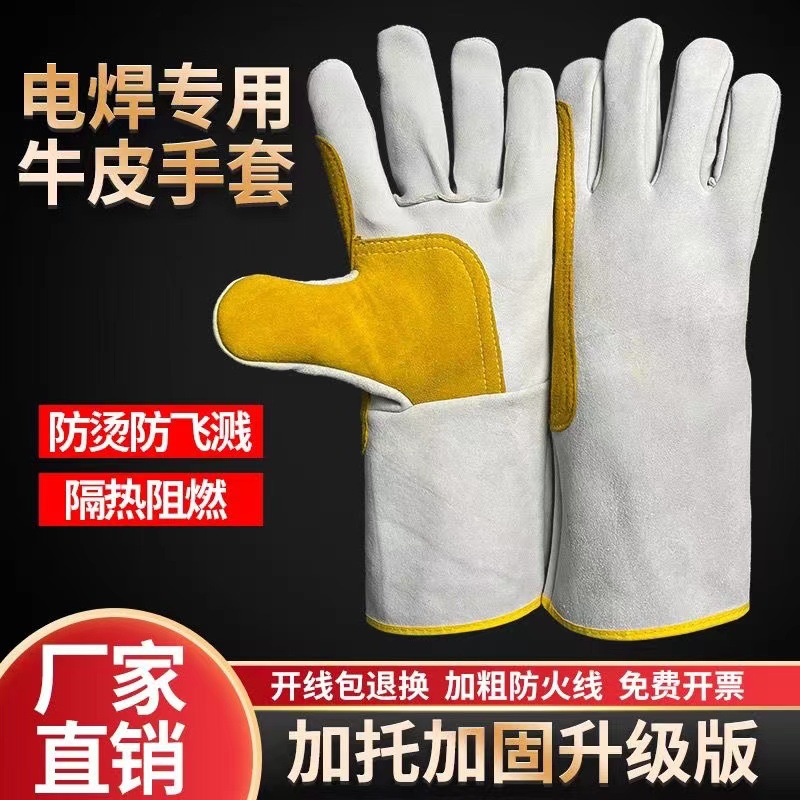 공장 긴 가죽 플러스 강화 용접 장갑 보호 두꺼운 기계적 내구성 고온 절연 장갑스토어 가기