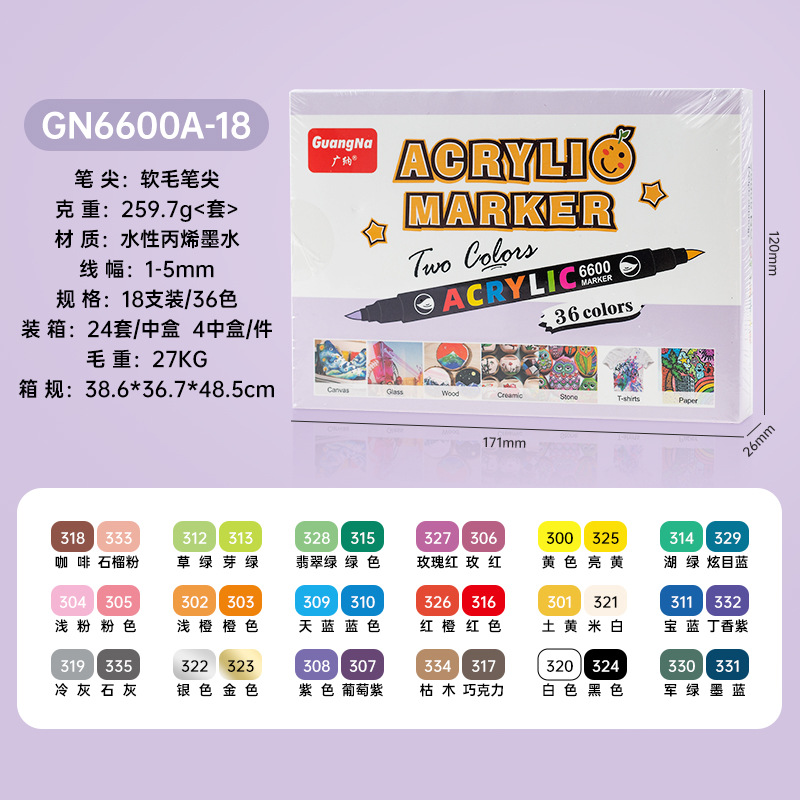 Guangna 6600 양면 2색 아크릴 마커 펜 120색 낙서 펜 방수 및 쉽게 퇴색되지 않는 부드러운 모 아크릴 펜